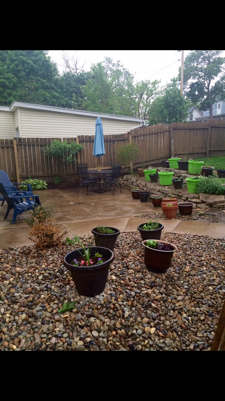 Our yard is small and the sun hits it in all the wrong places for a traditional garden. So I do a potted one instead. Last year I had about 25 pots. I did 3 types of tomatoes, peppers, eggplant, Brussel sprouts, basil, thyme, rosemary, carrots, spinach, arugula, and a couple things that are escaping me now. This was planting day last year. So it's much less labor intensive. Just watering and pruning. Never any weeding!
