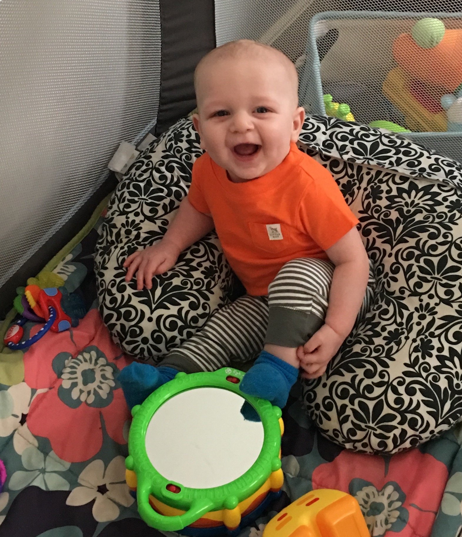 I was 17 when i got pregnant with DD & 18when i had her . I never read books about how or what to do with a baby & shes a happy healthy smart 5 year old. We learn as we go & i think your son looks perfect & perfectly happy. I think your doing just fine.
