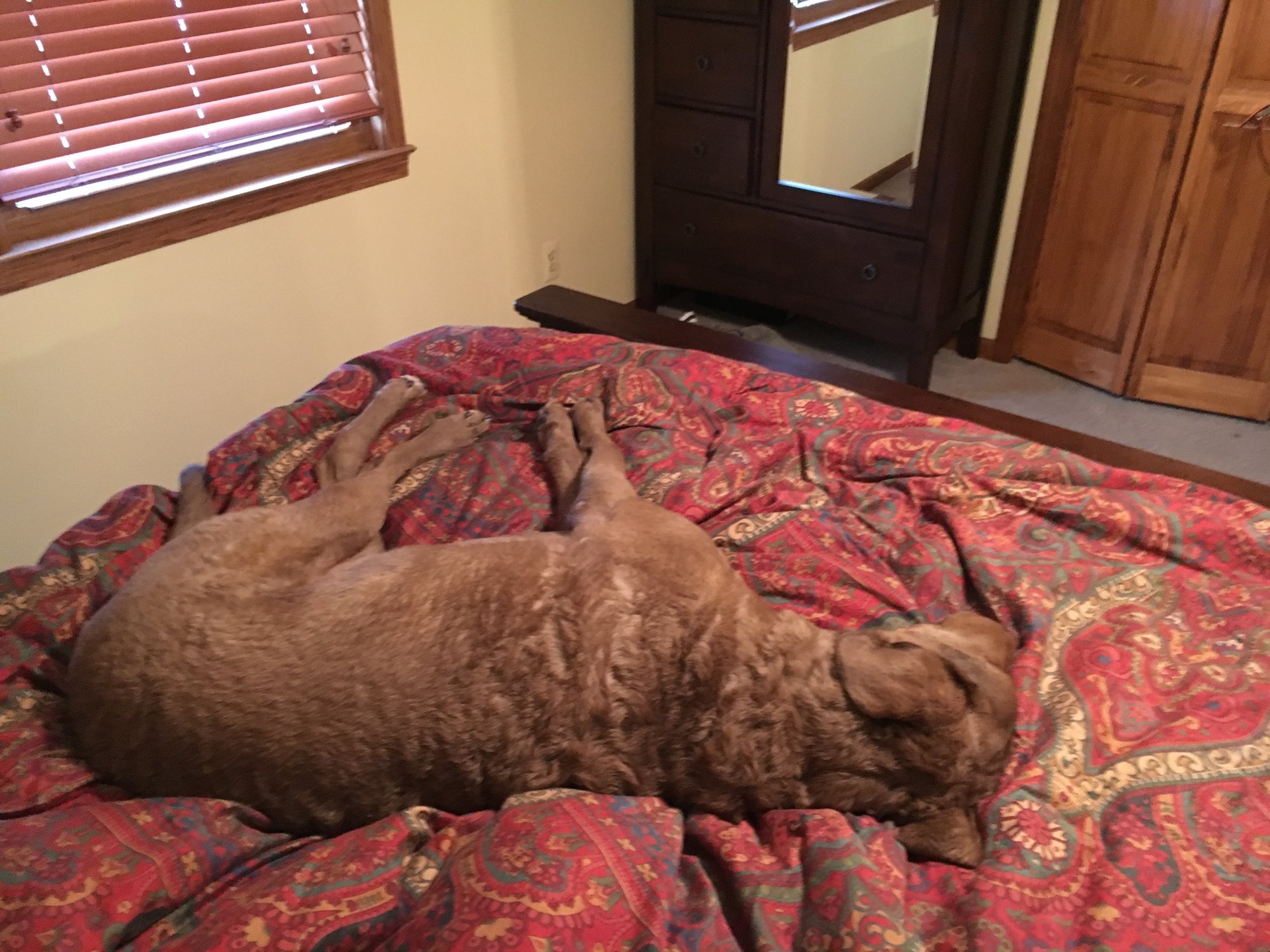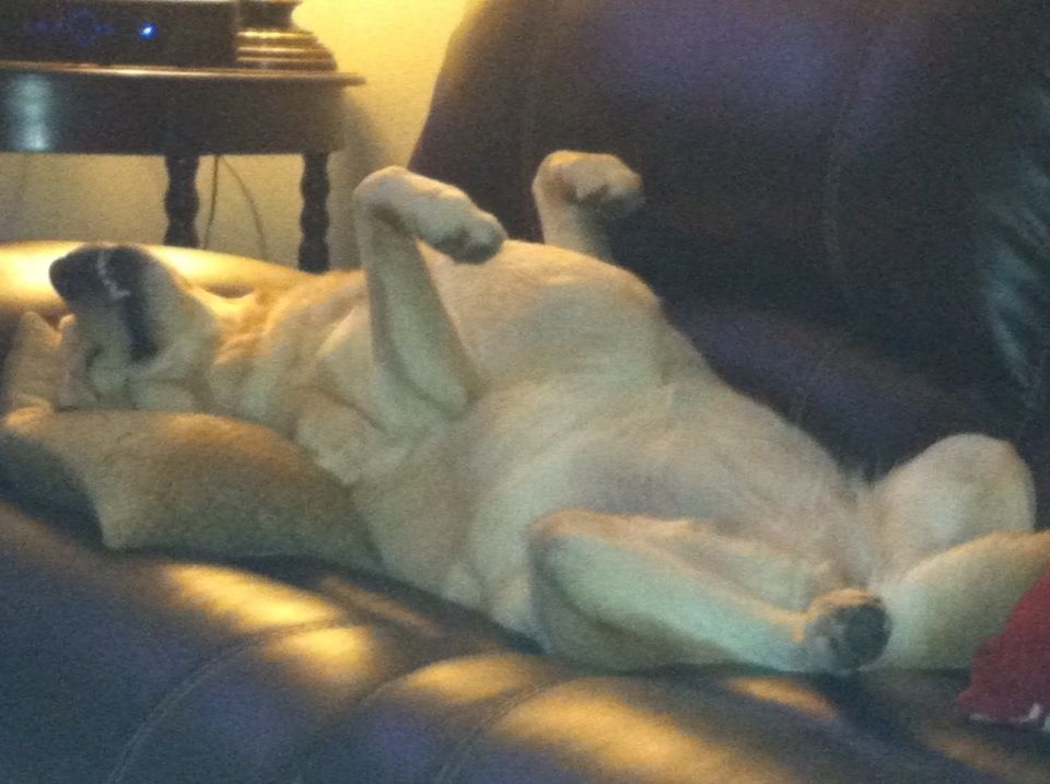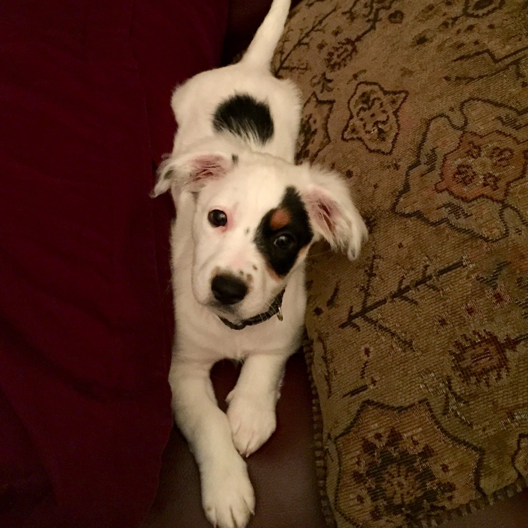 Apollo (the baby of the family) is a 1 & 1/2 year old Great Pyrenees. Don't let the photo of his handsome face fool you, he is a growing 80 lbs and stands 5'5" on his hind legs.