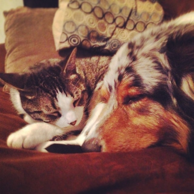 Here are our two boys: Phoenix is the Australian Shepherd, and Harley is the dapper cat: