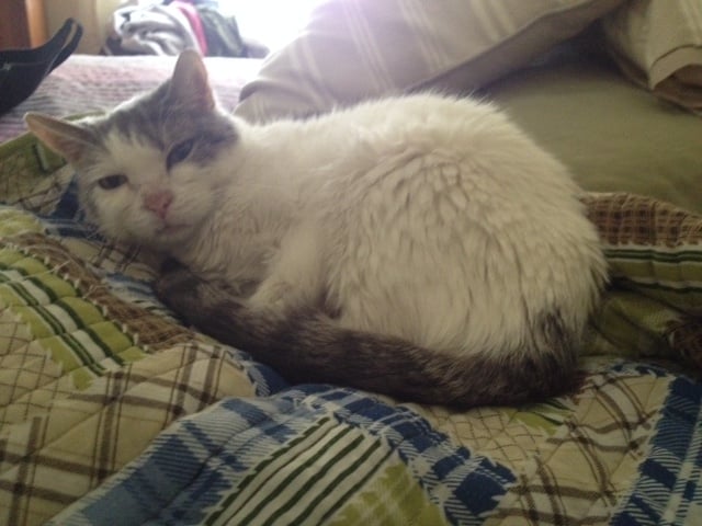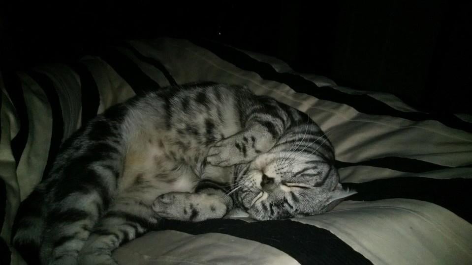 @chicandbubbly Awww cuddles! My cat definitely can look sour, she does that slit-eyed thing and lays her ears back a bit (we call her an owl when she does that.) Unfortunately, she IS sour... she cuddles with DH and I, but for the most part she avoids everyone else.