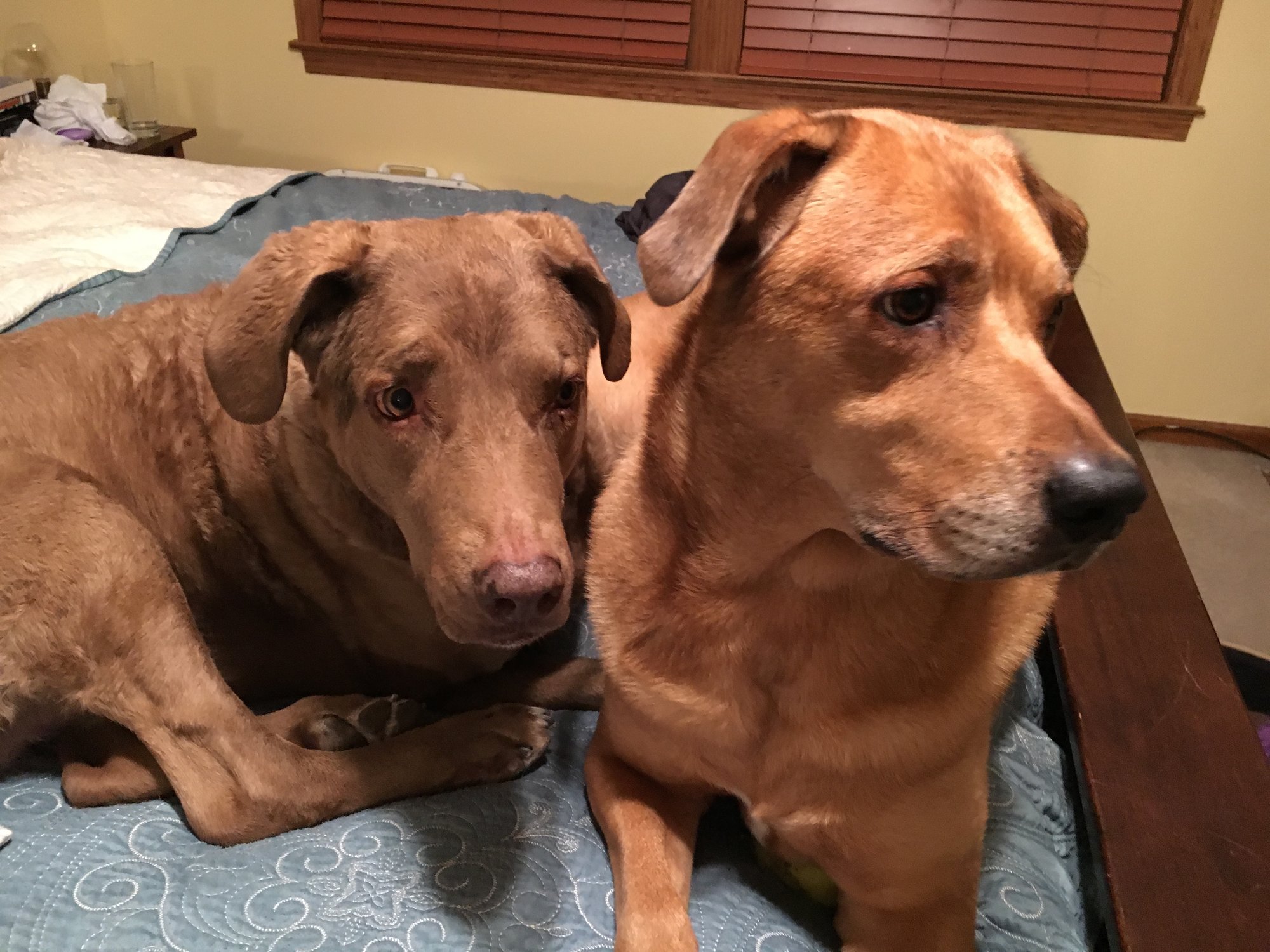 Here are my furbabies! Dallas is a 10-month old 117lb. St. Bernard/Bernese Mtn Dog mix. And his older sister is the 75lb. chocolate lab. Such fun pups!! Can't wait to give them siblings to cuddle!!