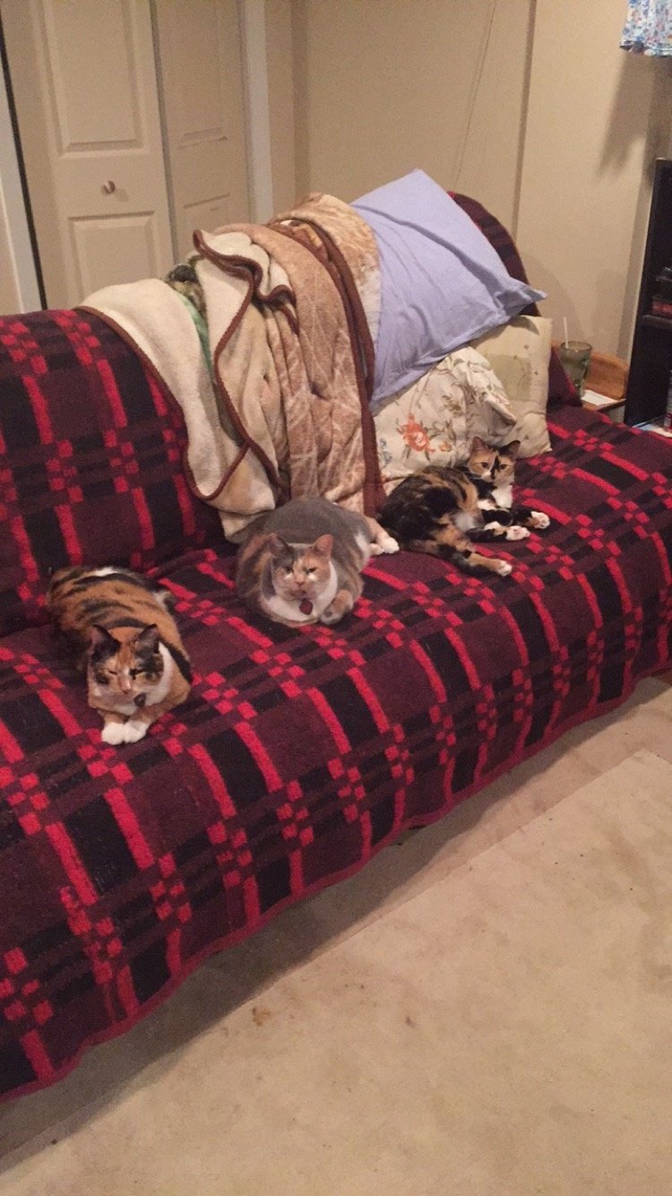 My 3 calicoes: (L to R) Thea (5), Cleo (5), & Callie (1.5)