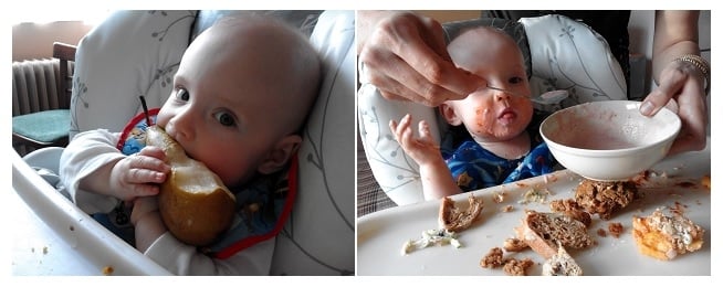 We do a combination of both with absolutely no issues. Mealtime has become something to look forward to. It's so delightfully messy and I love seeing how quickly our LO is learning to explore, taste, nibble, bite, chew, slurp, and yes, at times, even gag on food. I was nervous at first, but that subsided after some time. I'm still always on high alert when he's eating, ready to jump in and help, if needed. That hasn't been necessary so far, thank goodness. An added bonus: all of that exploration and manipulation is great for tiring him out before bedtime. It takes a lot of concentration and use of motor skills to handle food - whether it's getting that spoon into his mouth or figuring out how to tackle that muffin.