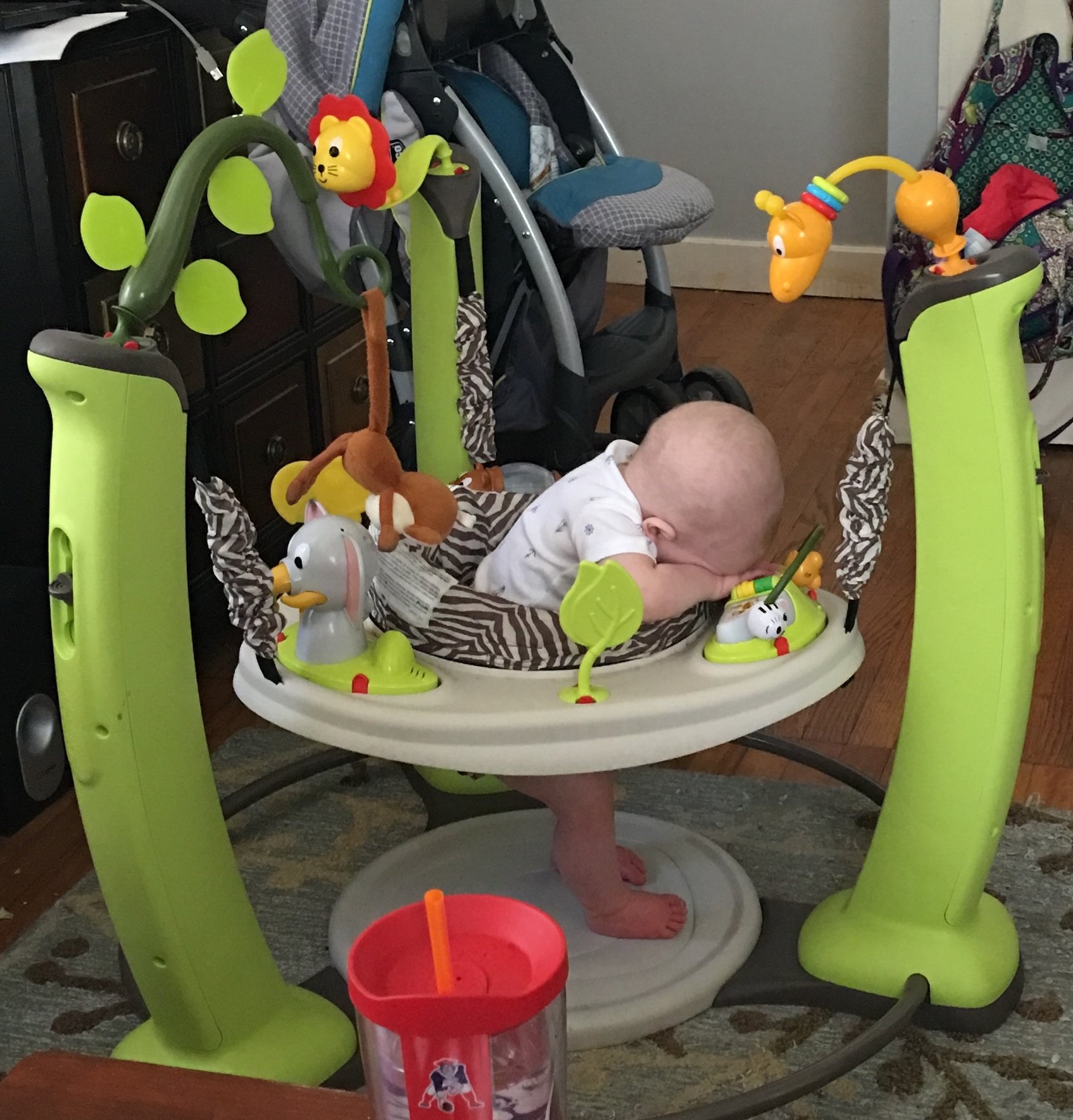 I guess all the chewing to eat five bites of chicken wore his ass out!! One minute he's jumping and playing, the next he's down for the count!