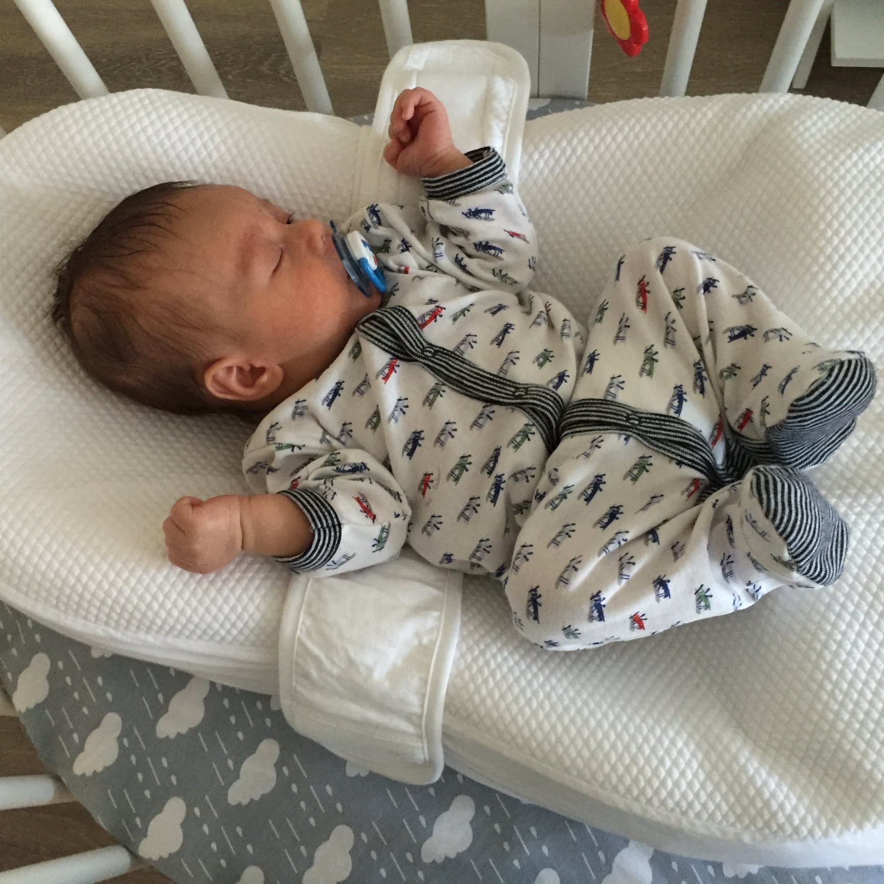 LO sleeps swaddled in his bassinet in our room at night. Sometimes we put him in the RnP if he is super fussy, but we've been using it less and less. When he was younger, he could nap pretty much anywhere, but now the only way he will nap longer than half an hour is on his tummy on our couch (supervised). He can sleep for hours this way. He is 9 weeks old.