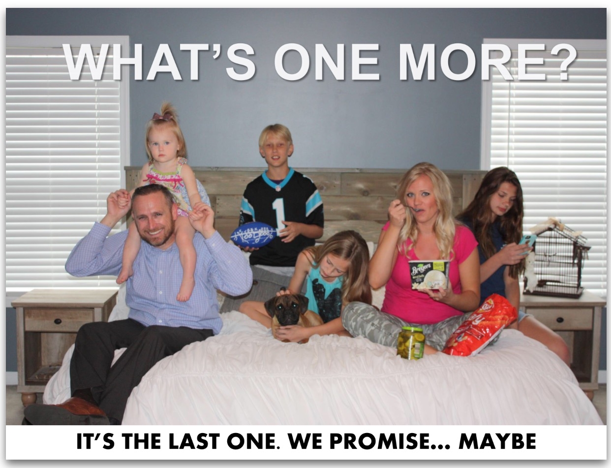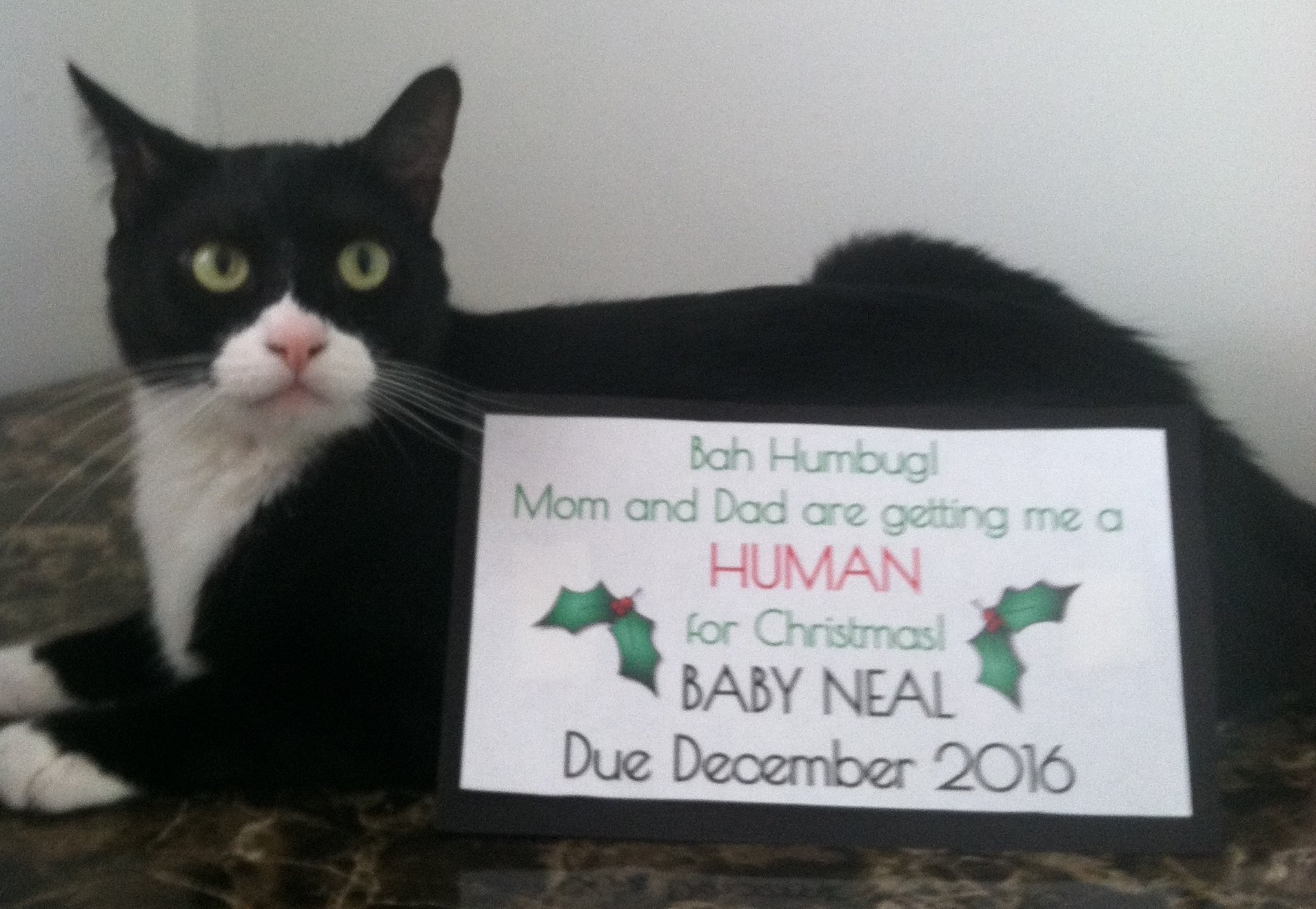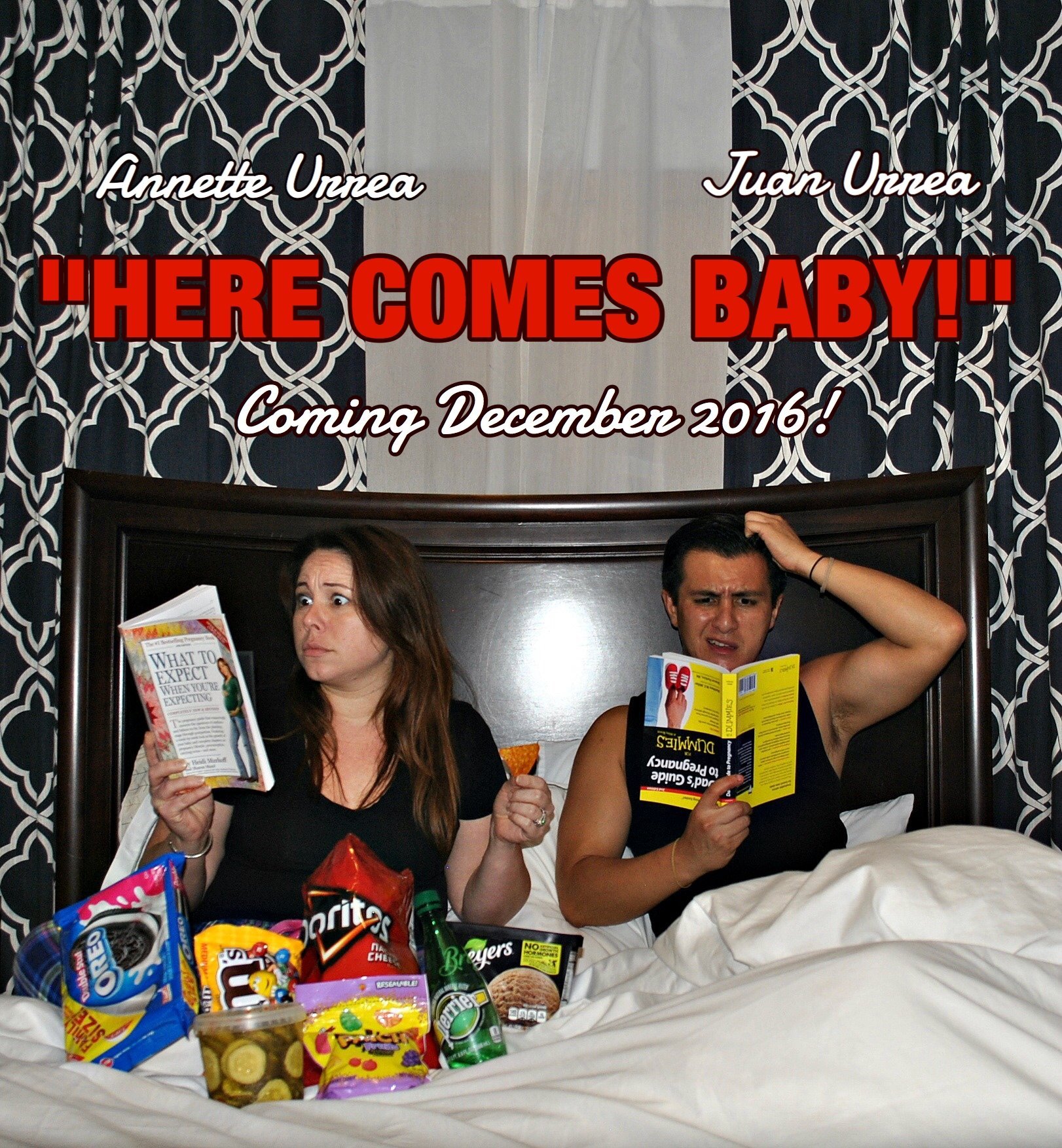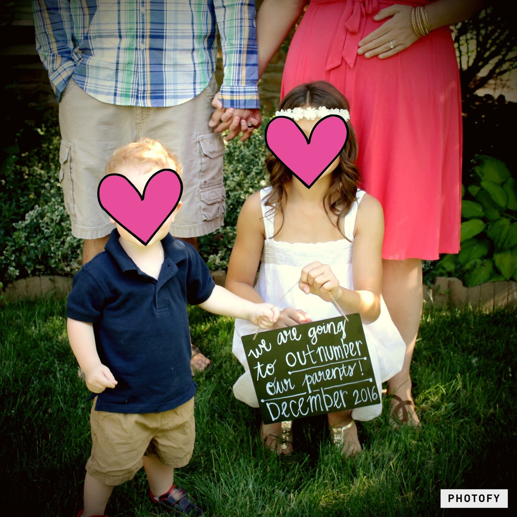 We have a friend at work that's really good at photoshop so we're doing the fantastic 4 (my husband loves superheroes/comic books) with me as the invisible woman, him as mr. fantastic and our daughter as the human torch. Then there's a question mark over my stomach area and it says newest member coming December 2016