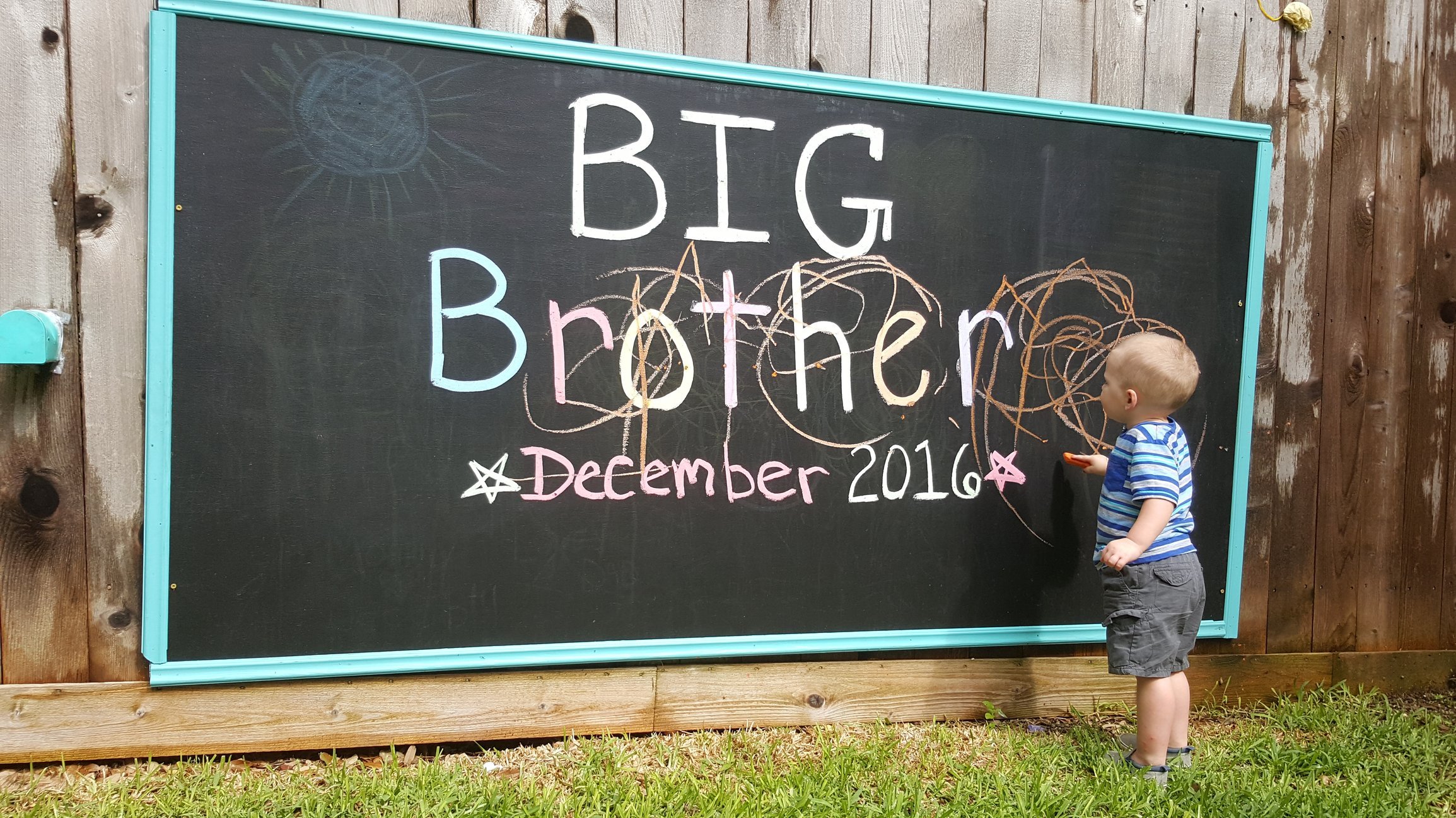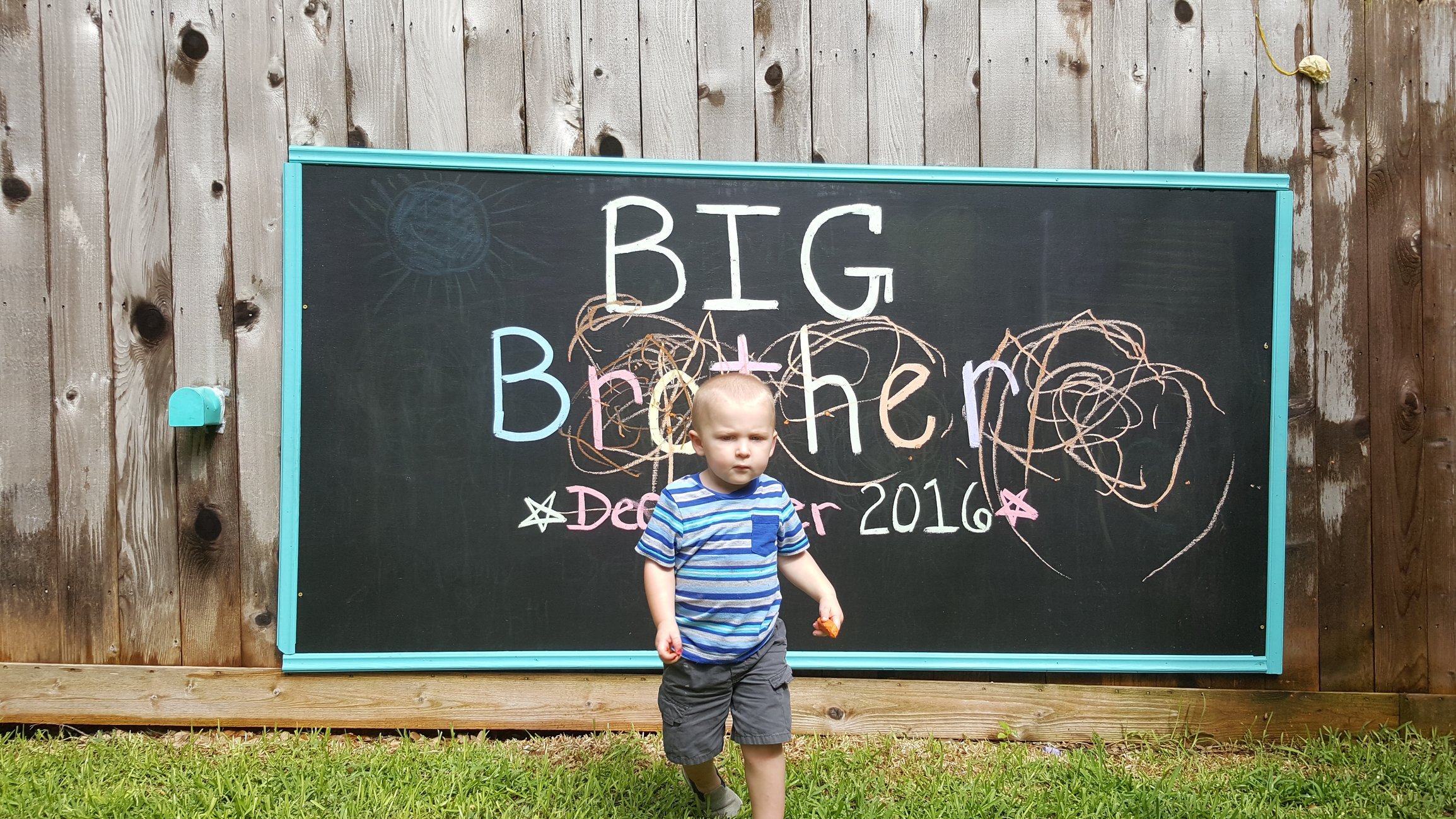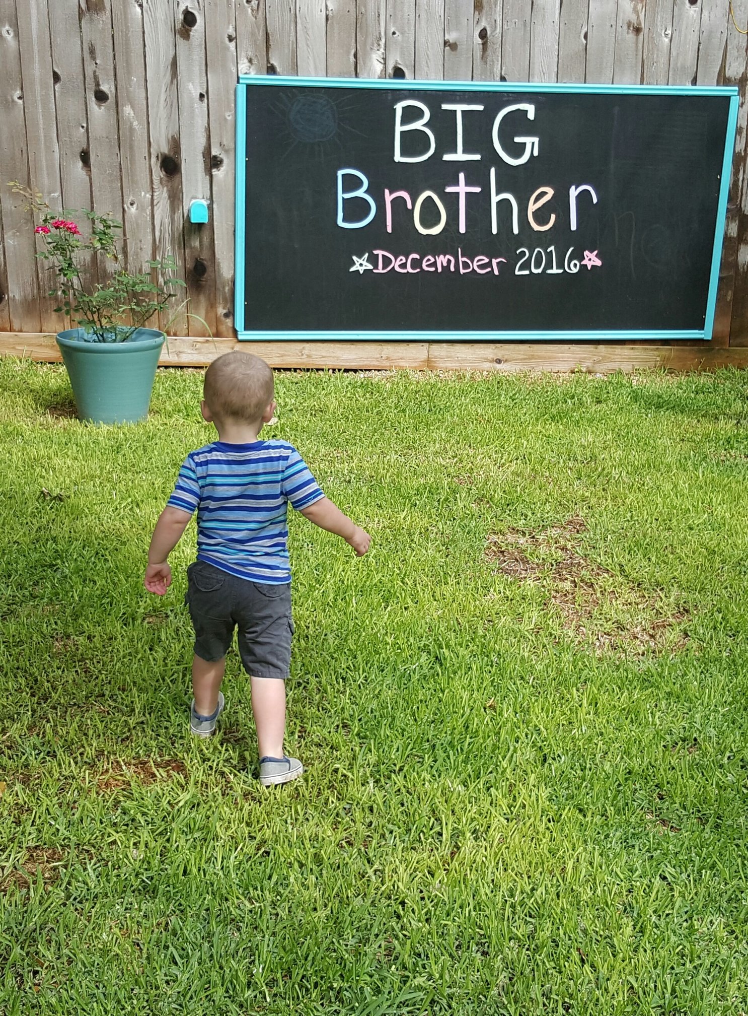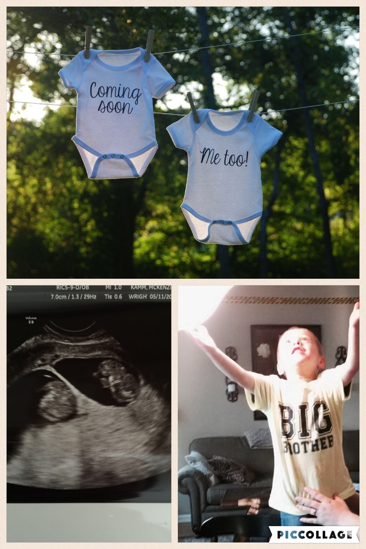 We announced to the world last Wednesday after two positive doctor appointments and ultrasounds. I wanted to see these babies one more time before I told anyone more than immediate family/close friends. We could NOT get a good photo of DS in his big brother shirt, I tried 3 different times. He just moves too much these days.
