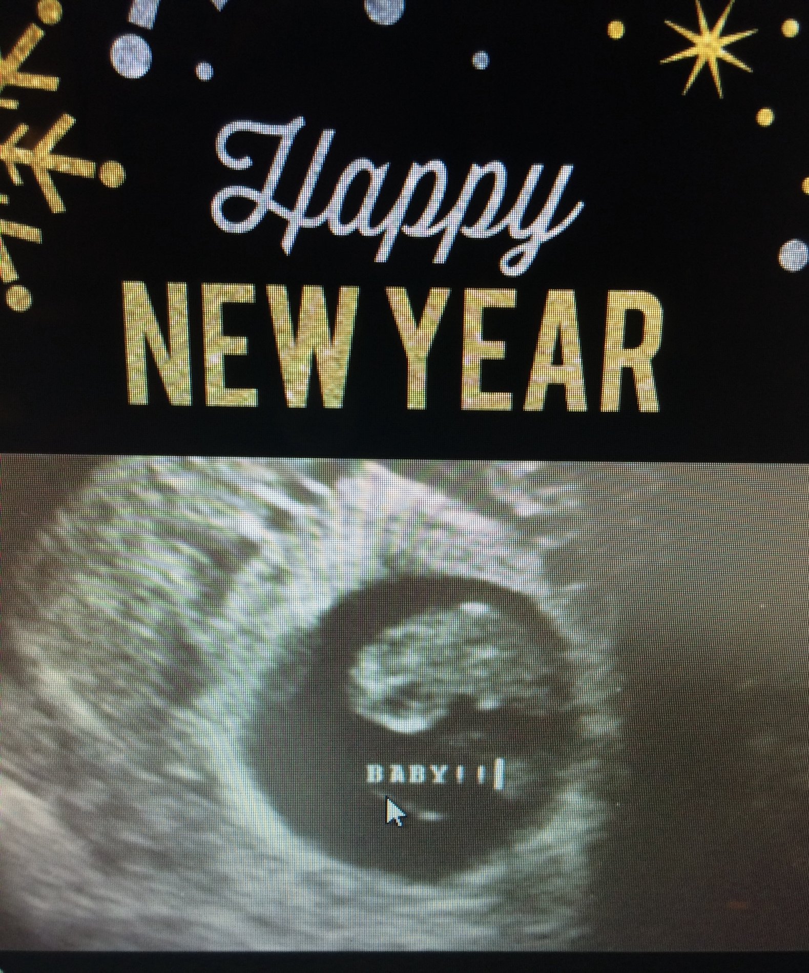 I really don't feel comfortable sharing before 12 weeks (personal preference), however, my parents will be in town this week and we saw baby's heartbeat on Friday. I know they will suspect something if I don't enjoy a glass of wine at some point during the week. I ordered these cards for our close family after the ultrasound on Friday. I cut the text off since it has all of our names but it basically says Happy New Years! Love our family + Baby #3 due 1/4. We will share with my parents this week and send the others next week when I will be close to 10 weeks. It is scary for me to share this early but I am going to do my best to have faith! We won't share with anyone outside of close family and friends until 12+ weeks just to be safe.