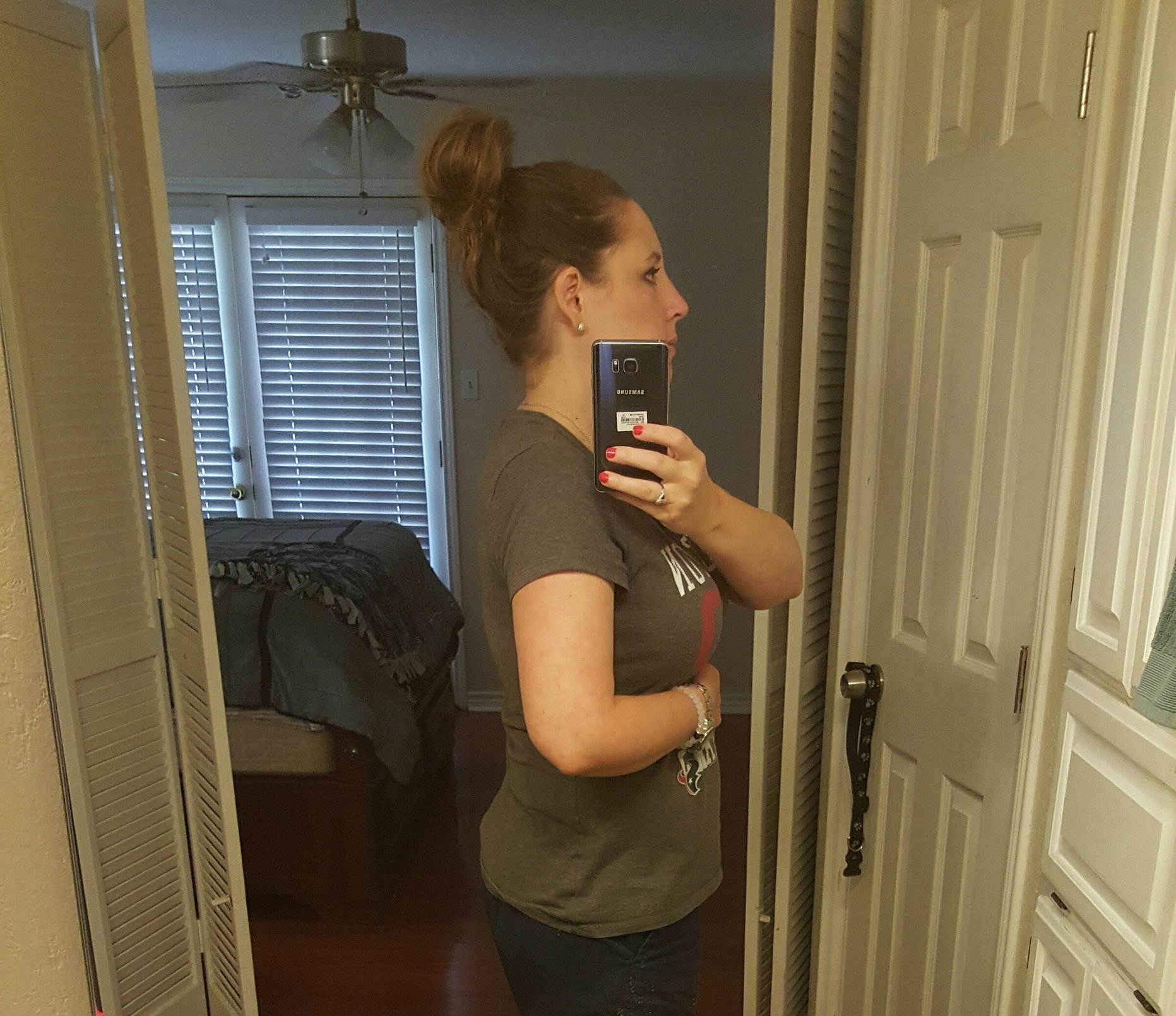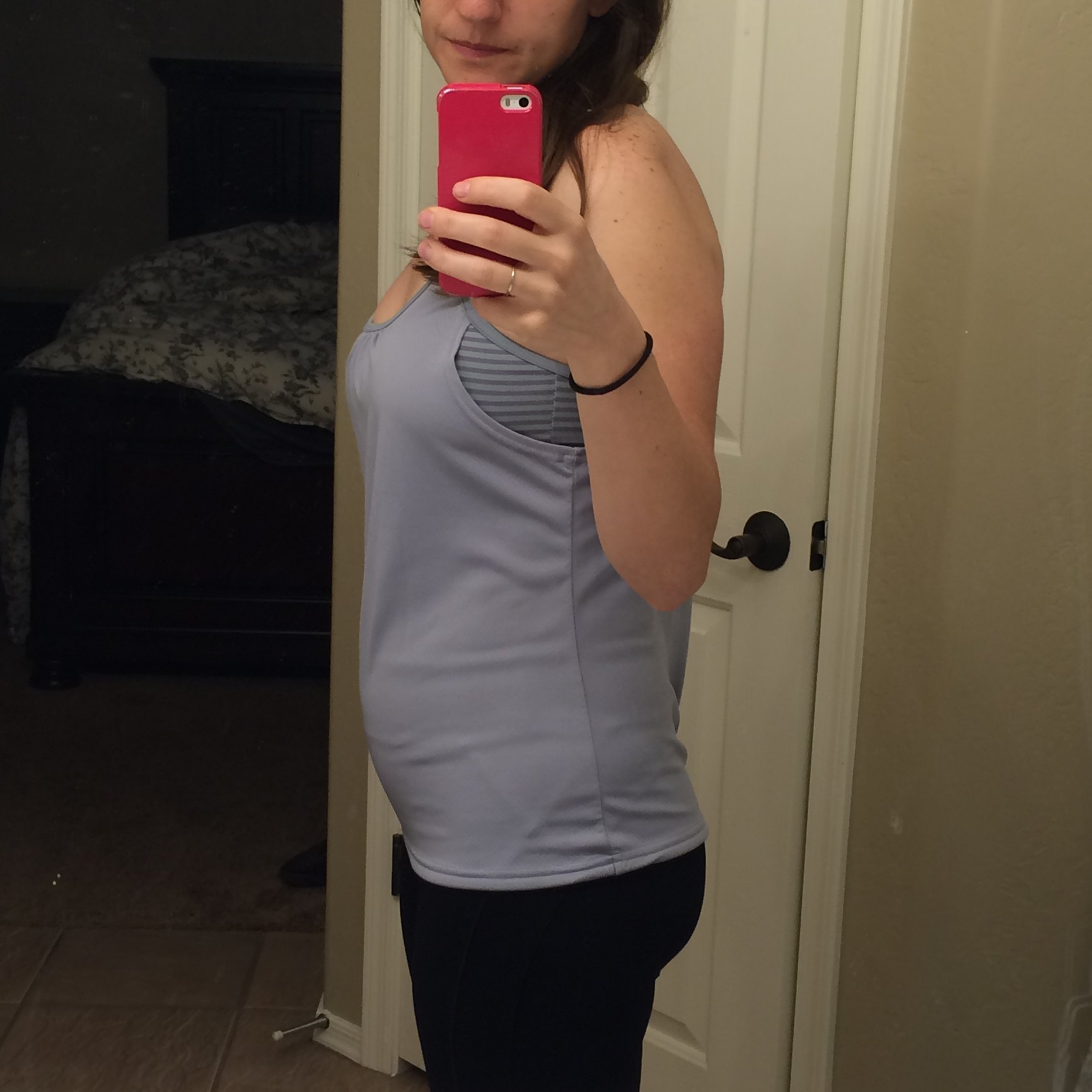 14+2 End of day bump is certainly bigger than the start. Side note on my shirt: it says "I Am My Own Superhero" and was the reward at the end of a fitness/health challenge I did in October. Won't be doing one of those again anytime soon!