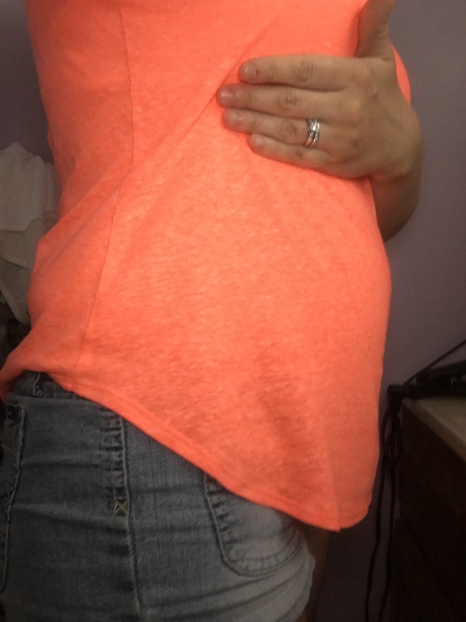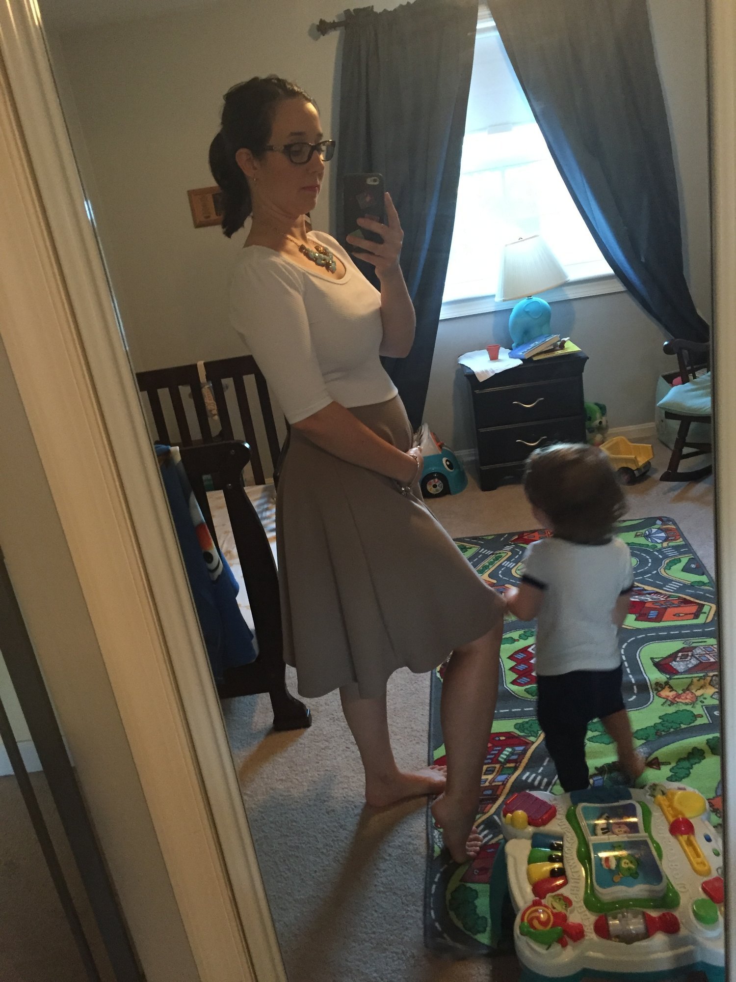 @swhiddon33 thank you! Lularoe! I normally wear a skinny belt and jean jacket with it, but the belt was not happening with the belly today lol.