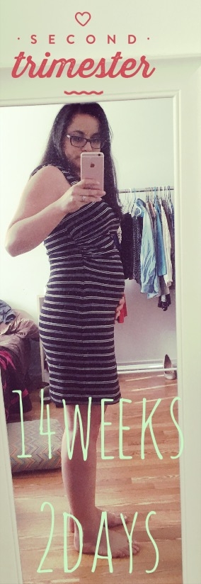 14+2 - the bump isn't near as bumpy since the bloat has eased - that's alright, I'm sure it'll come back. Meanwhile, my "pregnancy glow" has forced me to start using my heavy duty foundation. My face likened that of a lobster this morning.