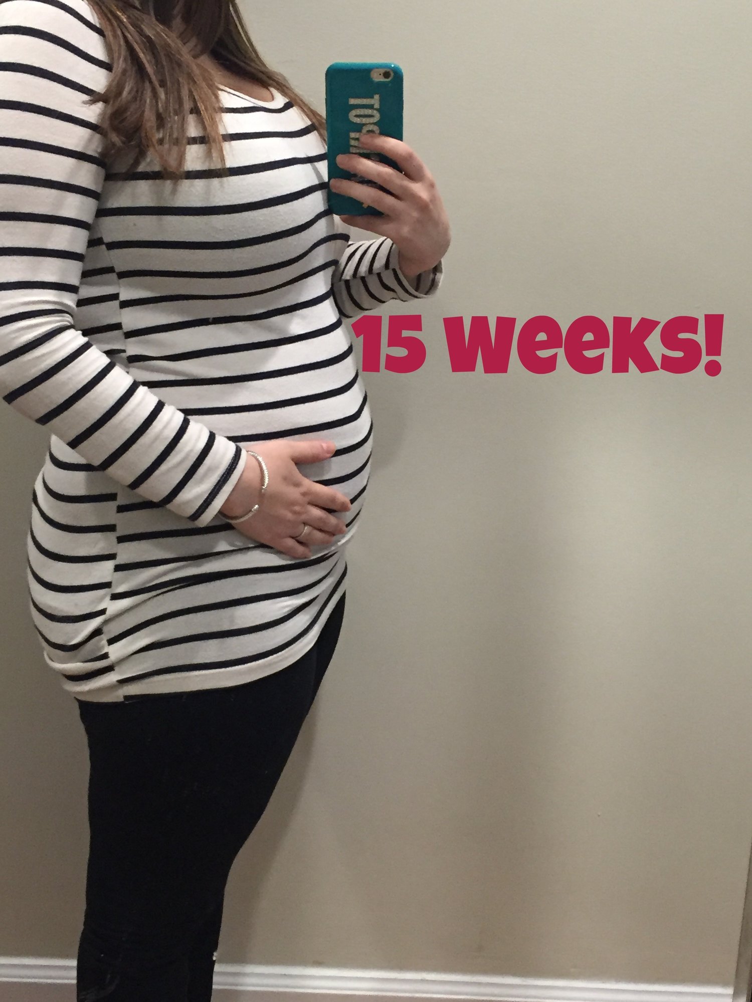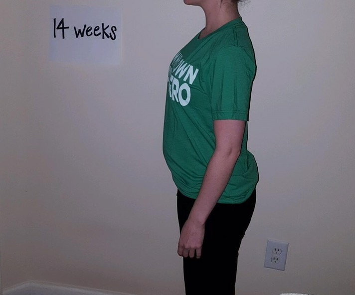 14 weeks. Really hard to get a good picture with no full size mirrors in the house...