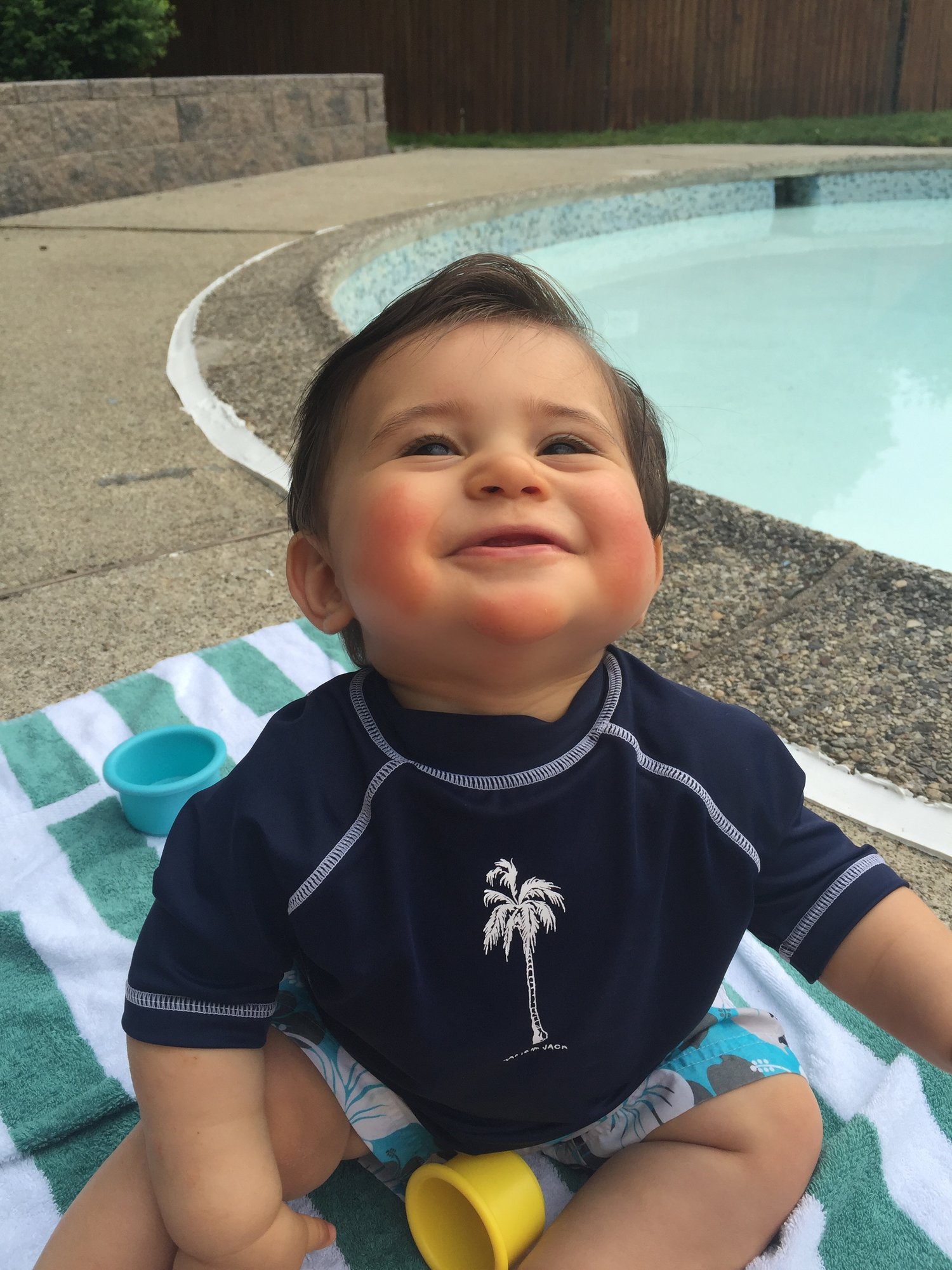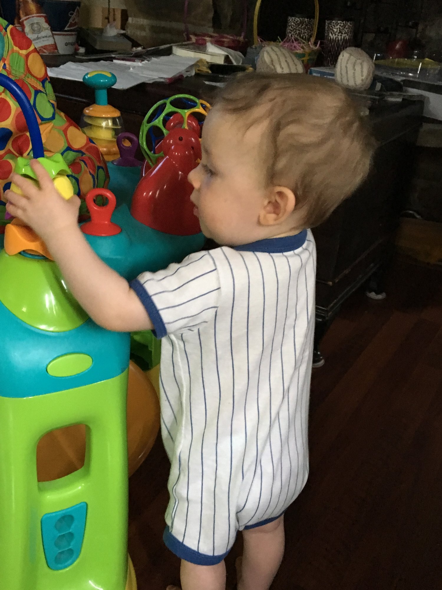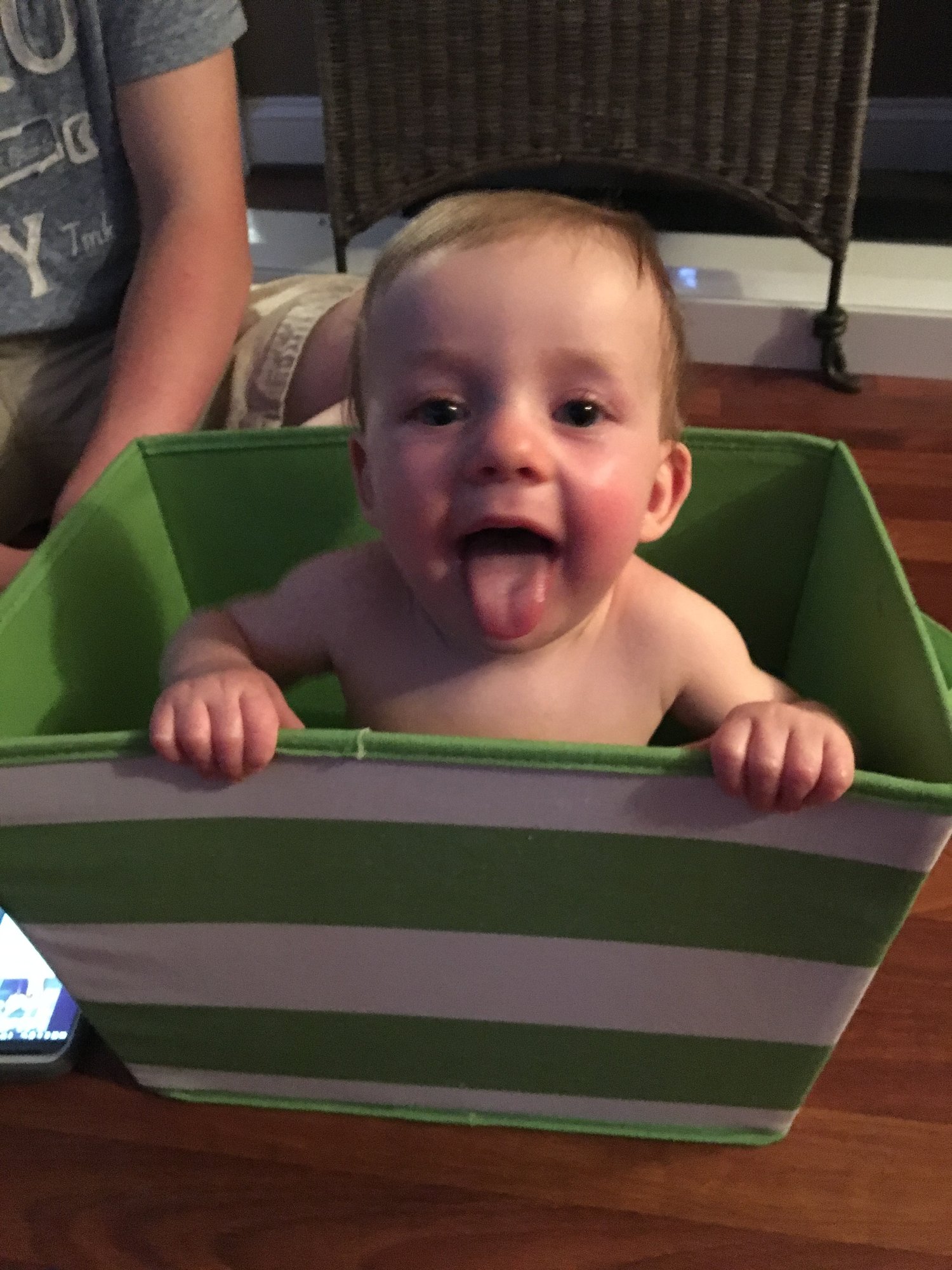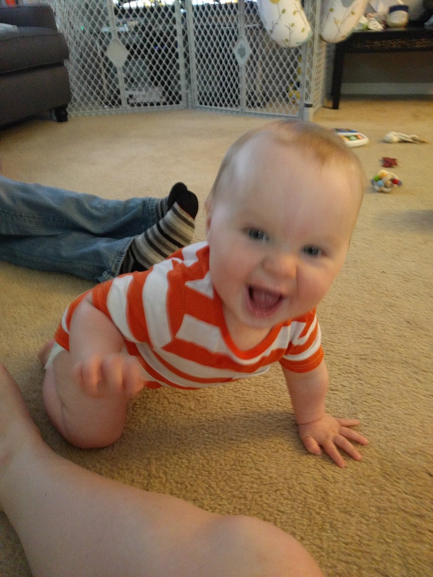 Your babies are absolutely delicious!!! Cary is 9 months old today and just woke up with his first tooth. No crawling, but cruising. He laps around the coffee table, drops things, picks it up, and repeat. Love seeing all your cuties!
