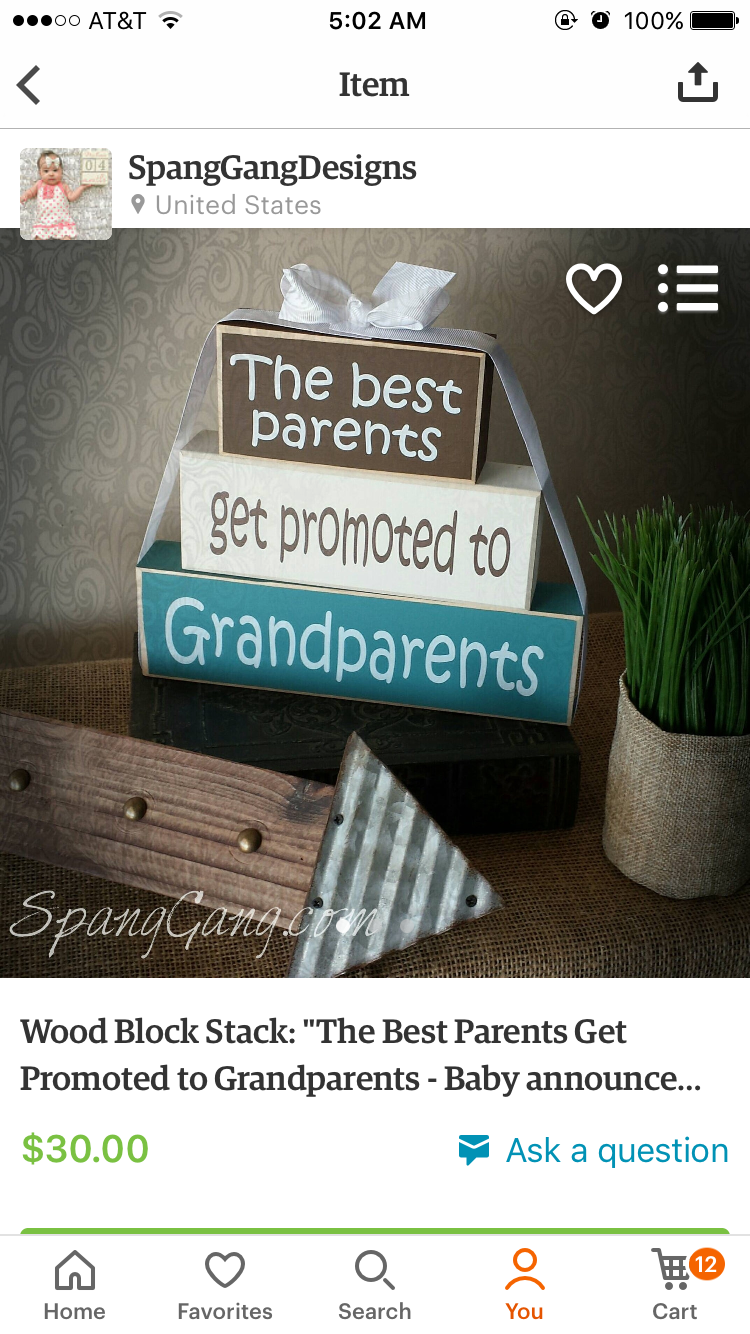 We bought a onesie that said I love Grandma and a picture frame that said Grandkids for my mom and MIL. I wish I would have recorded their reactions, it was priceless!