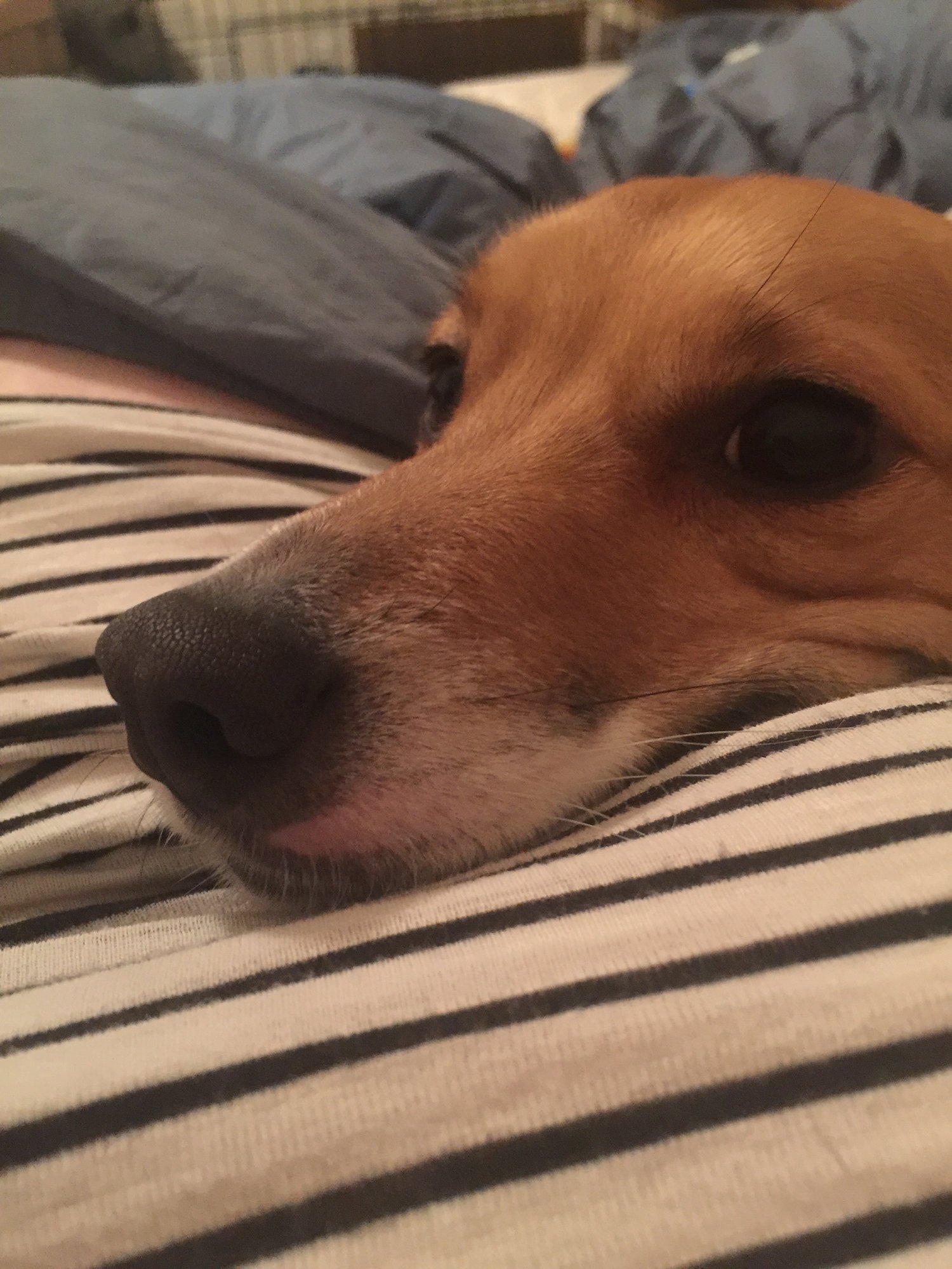 Lucy keeping a close eye on "her" baby. We were worried about her because babies scared her in the past but she LOVES Elliott and is constantly watching him. If he fusses she cries and sits close, I am really glad she's doing good with him around.