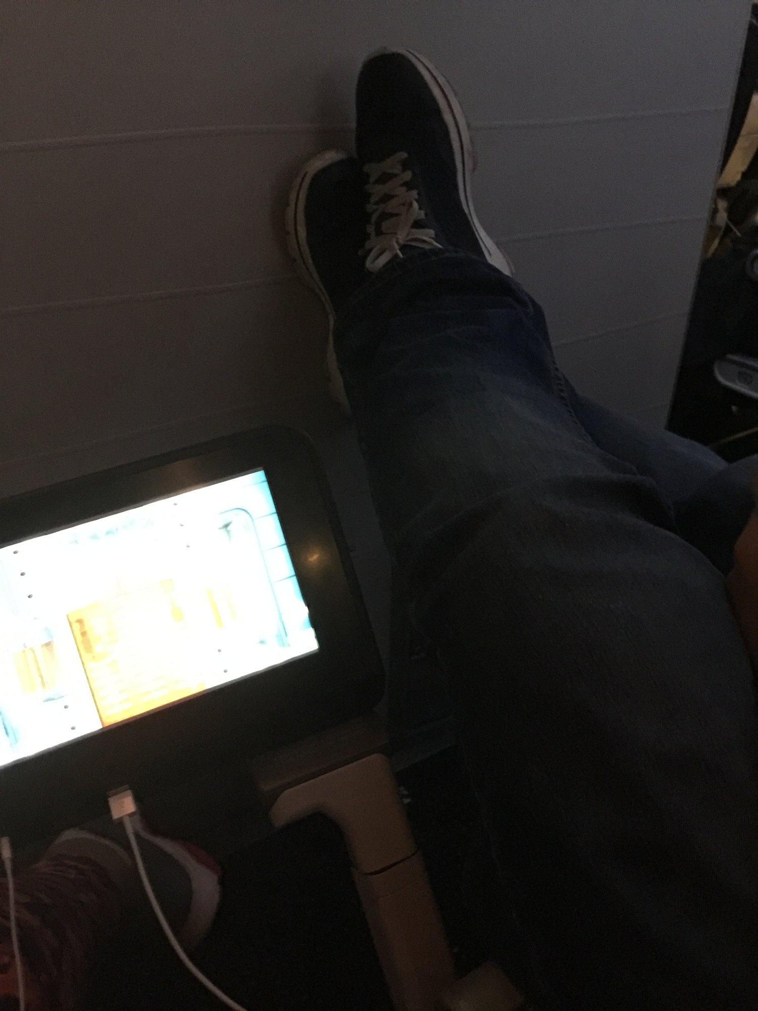 @housewifehobbyist I might because I'm about done and we have 14 hours and 31 minutes left on this flight. Also, the bulkhead is apparently a footrest for his comfort