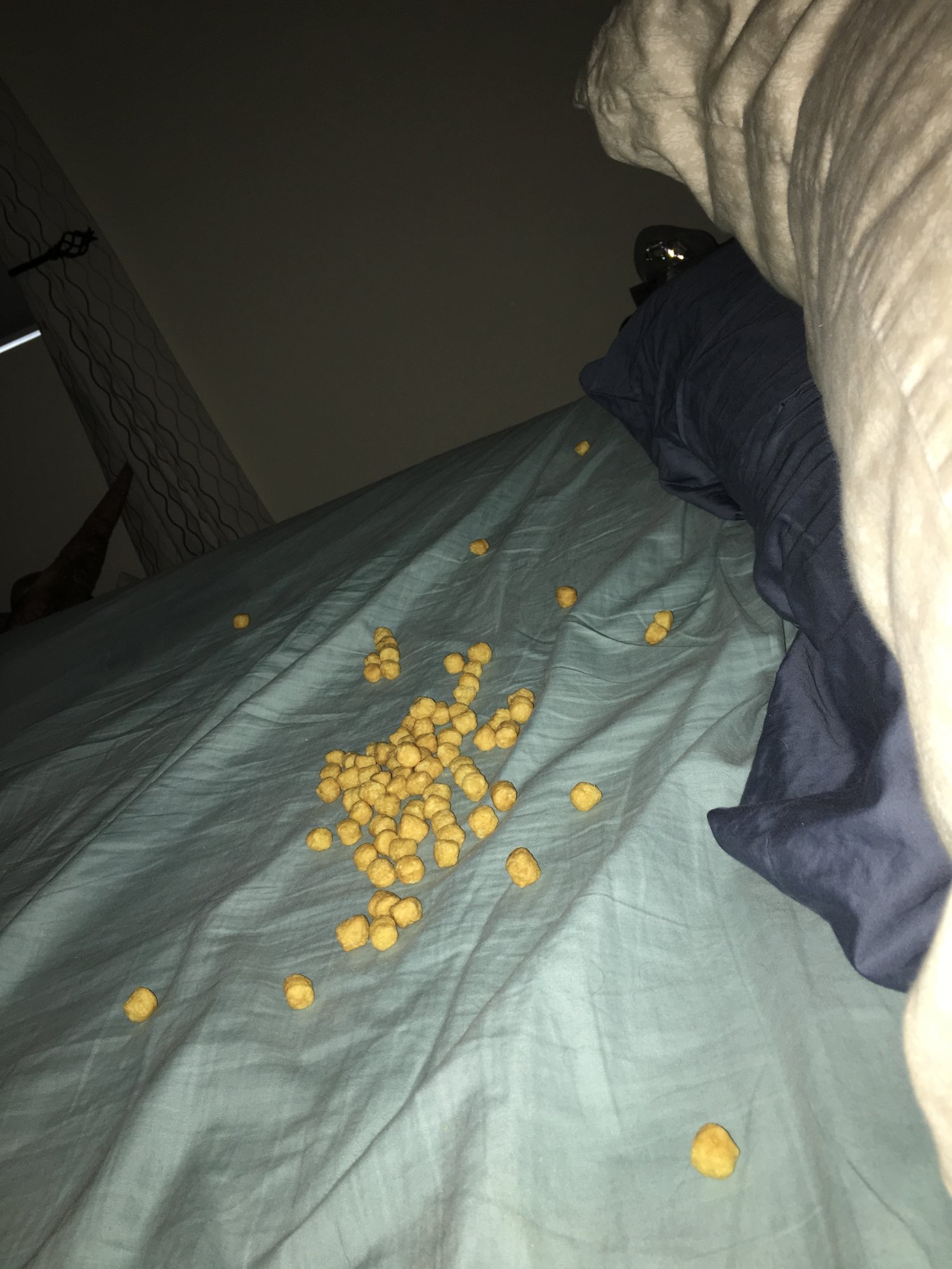 I love eating in bed. My husband had to quickly accept this will happen and I eat on his side. My compromise? I will not eat soup in bed anymore. That did not go well