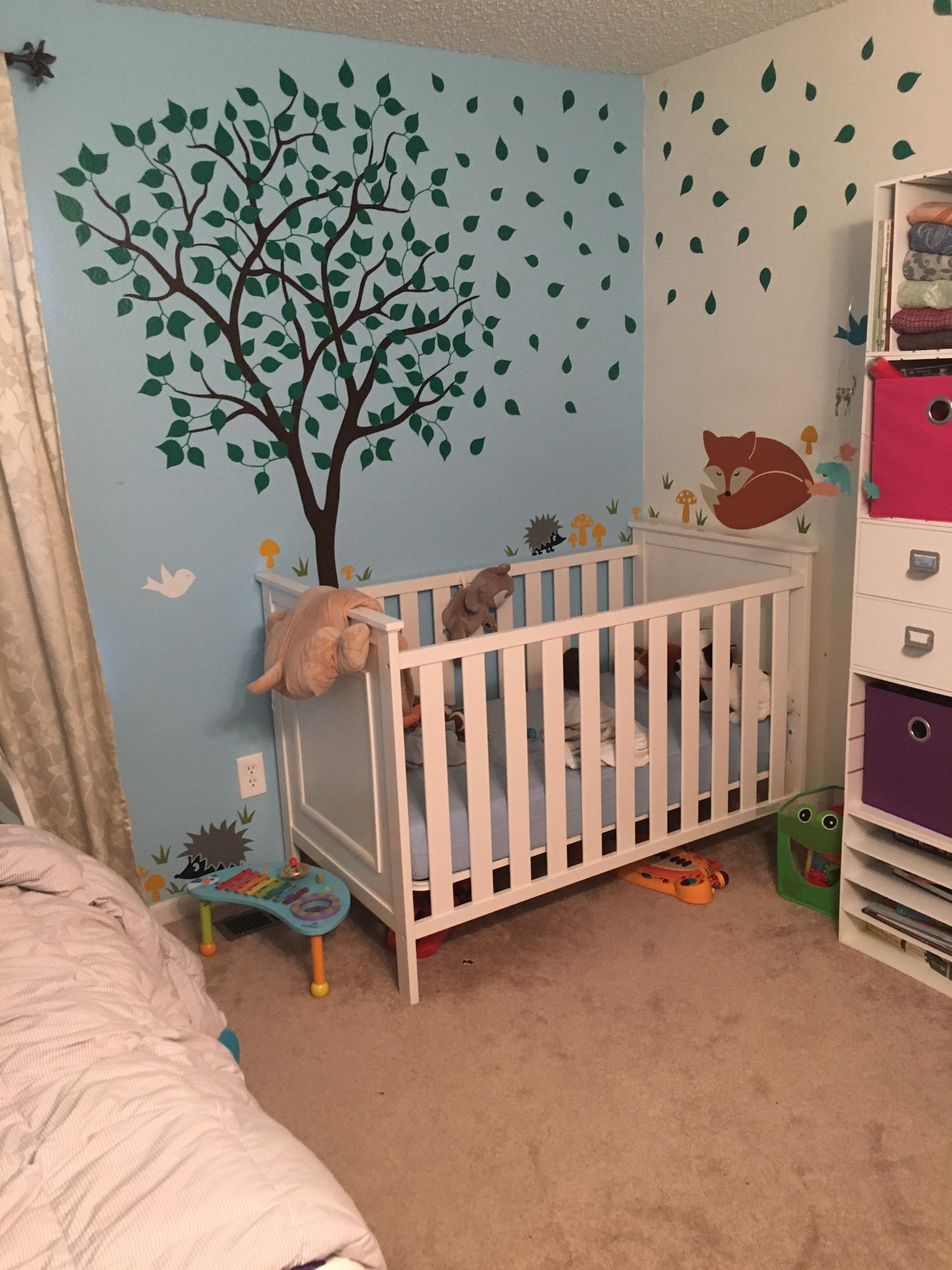 Sorry for t the double post but this is our nursery we did for DS. We have more on the other walls too, an owl, more foxes etc. The closet is our changing area :)