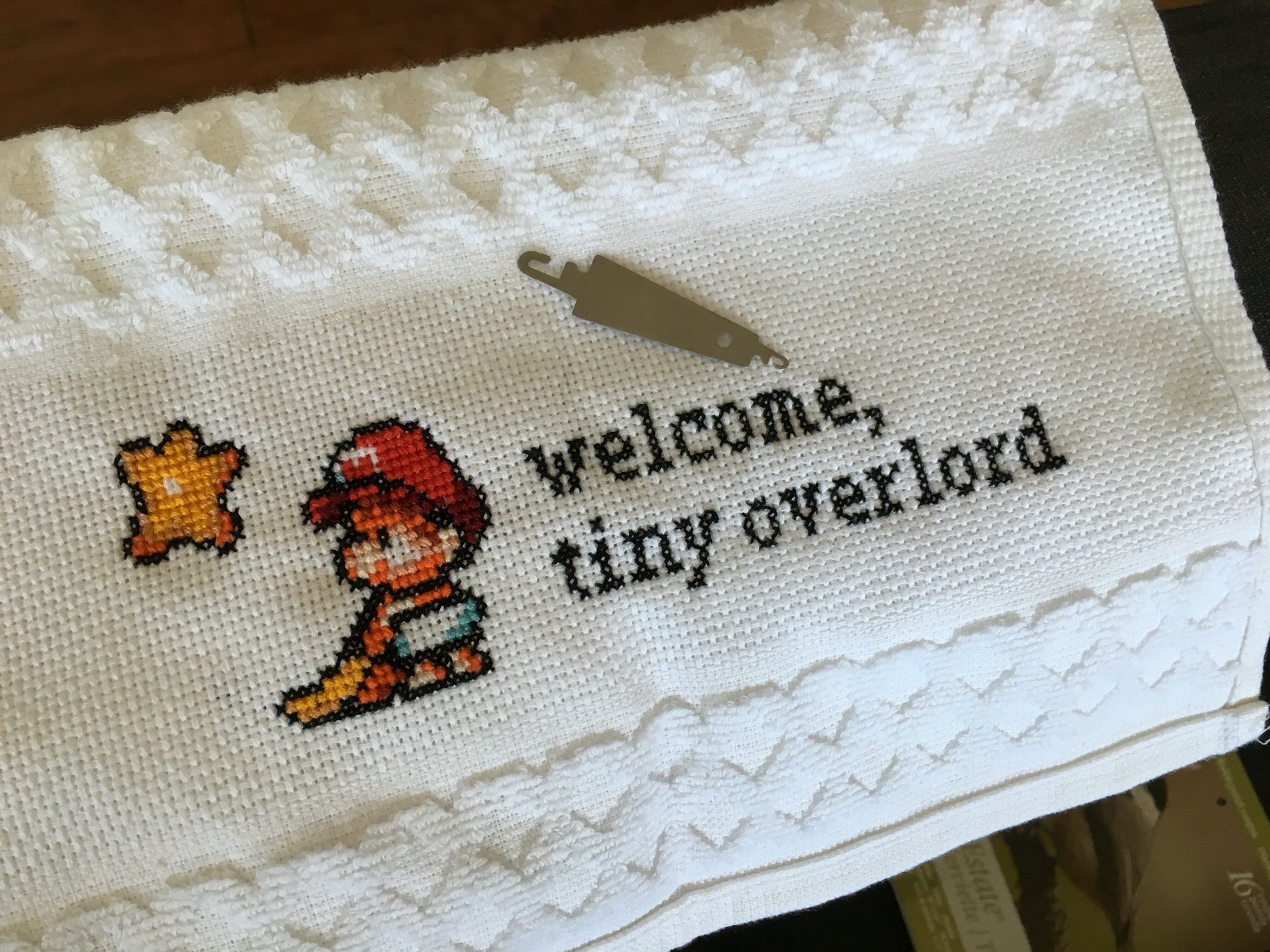 I think OH and I are feeling most strongly about the first two though. I really wanted to do like a video game themed nursery since I cross-stitch a lot and have been making some stuff for the baby (I feel like I've posted this everywhere but...):