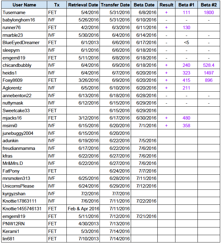 8/16 transfer day 8/1: 2 5AB hatching blasts, beta 8/10 = 250!!, beta #2 8/12 = 572, ultrasound on 8/24...TWINS!