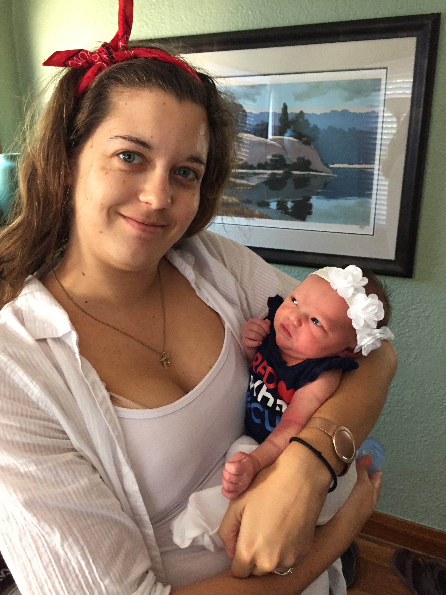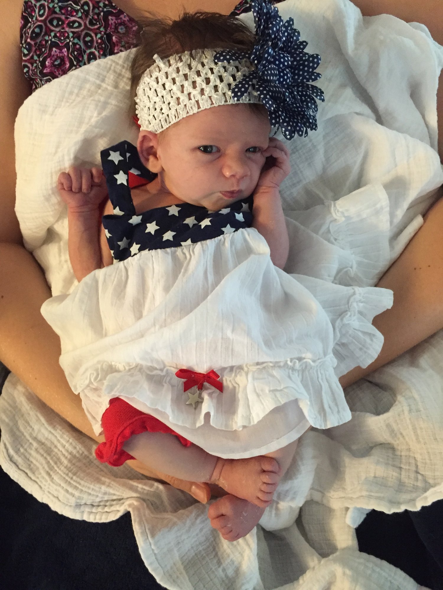meggyme said: The cutie and I on 4th of July. 1 week old as of Sunday. @laurenm2123 love the tshirt!