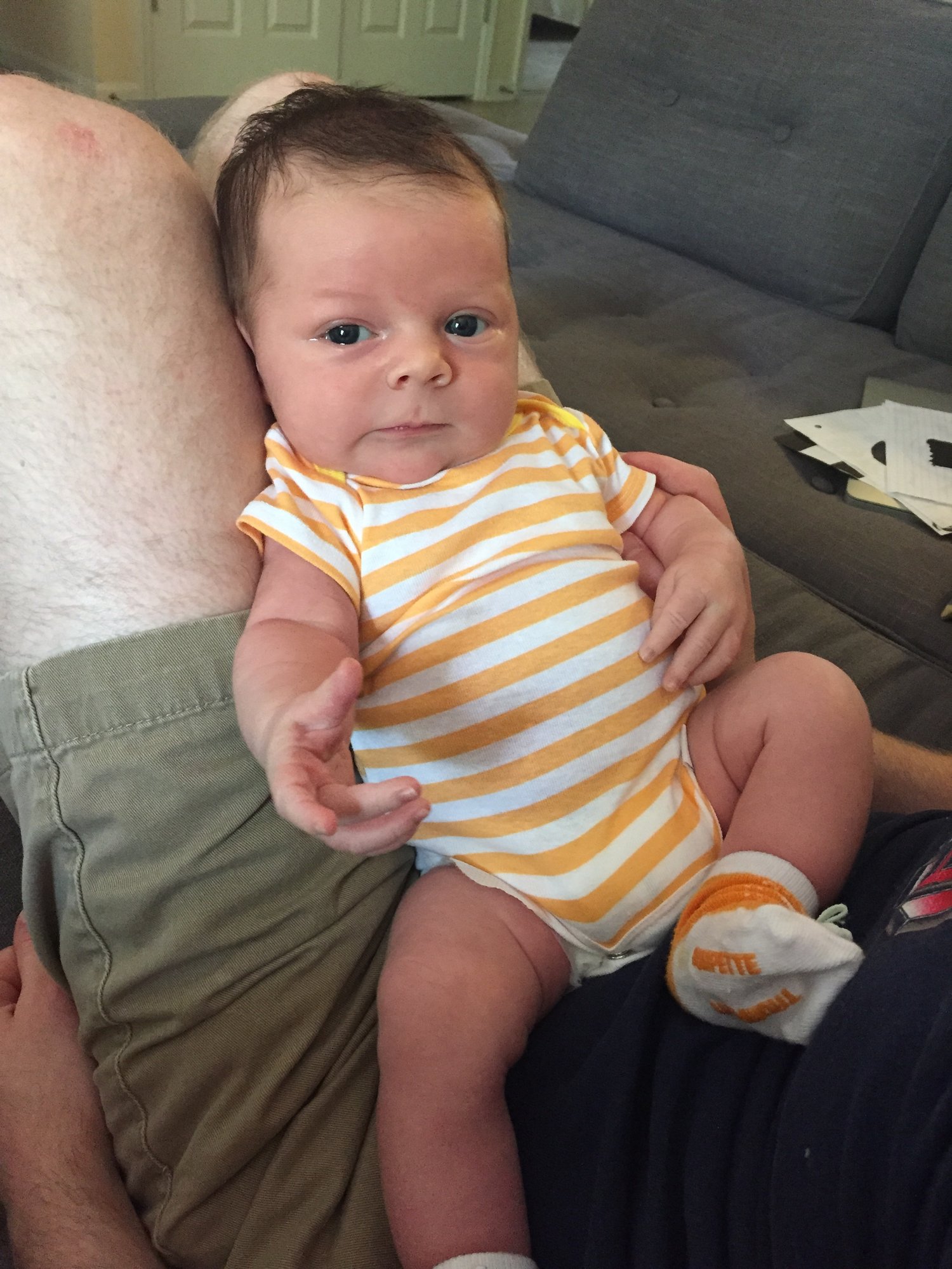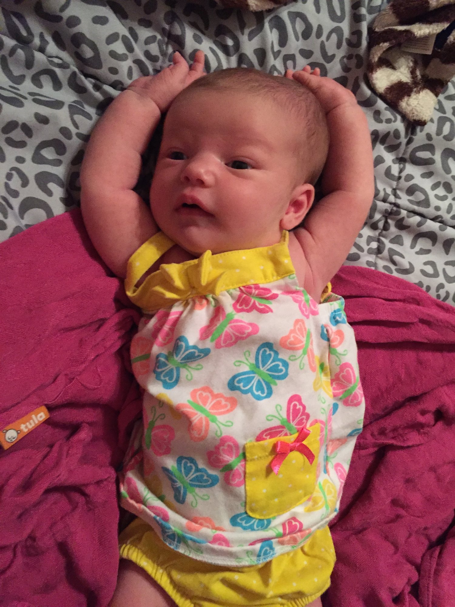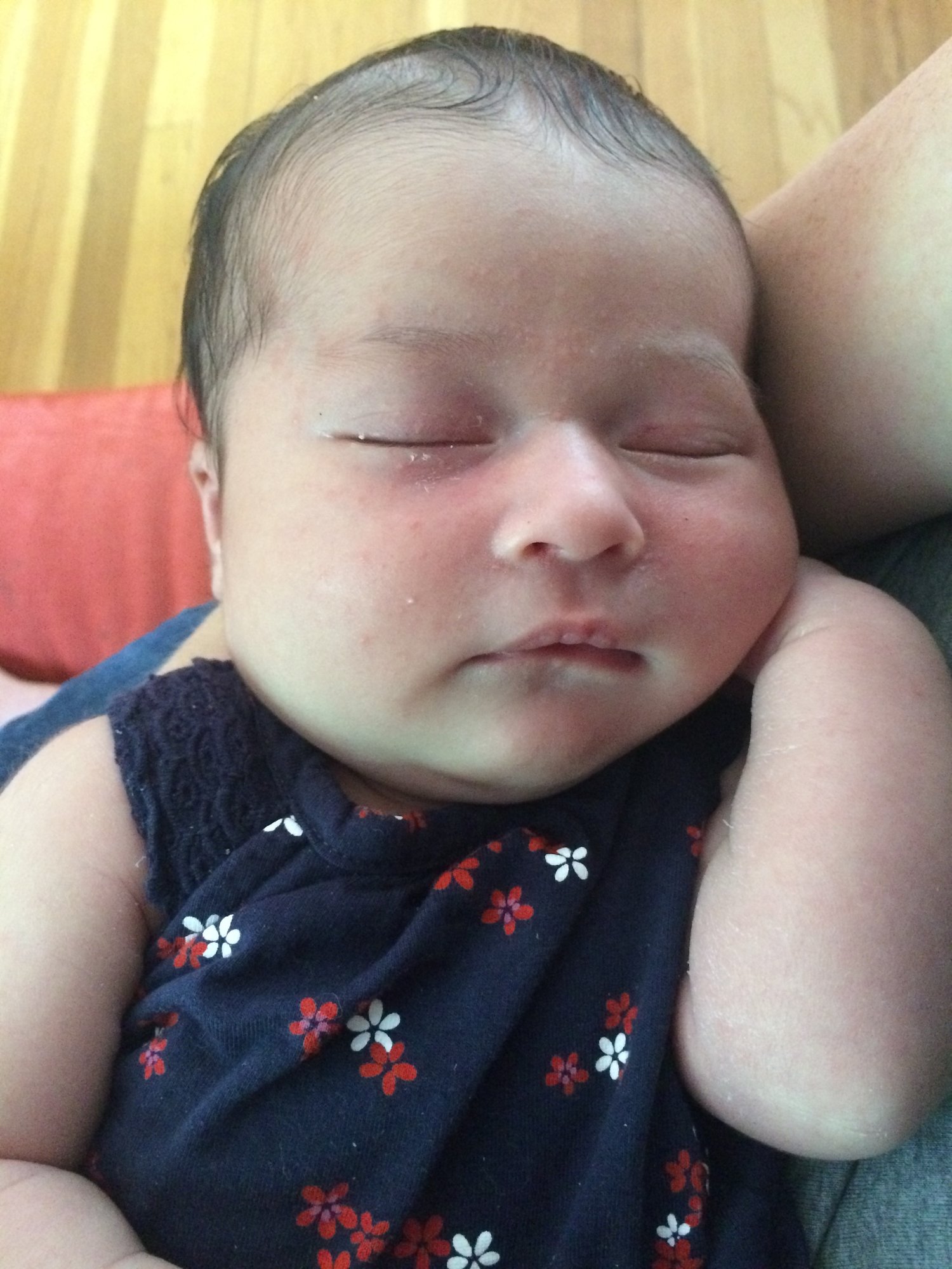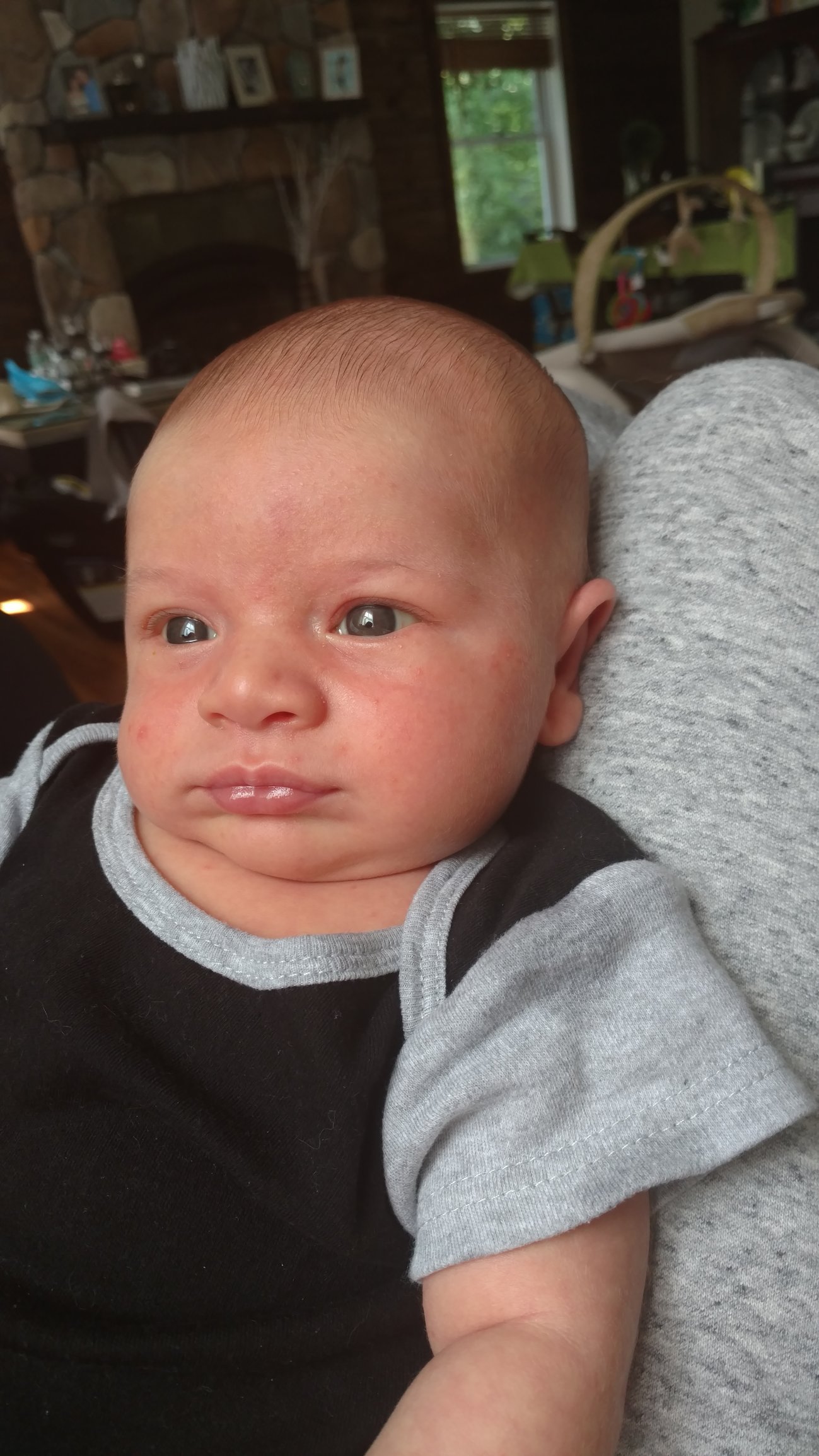 Simon is 3 1/2 weeks, this pic is from a few days ago.