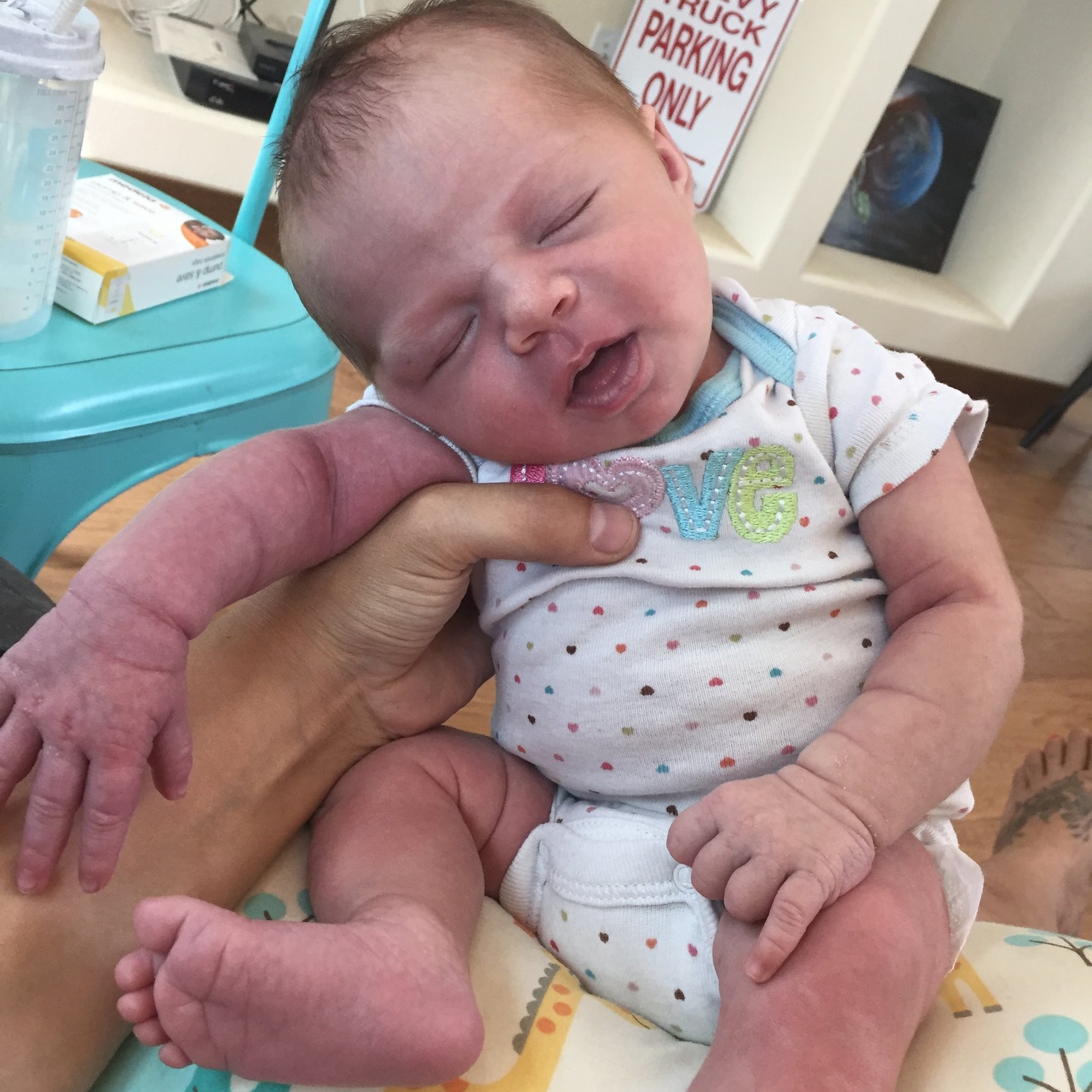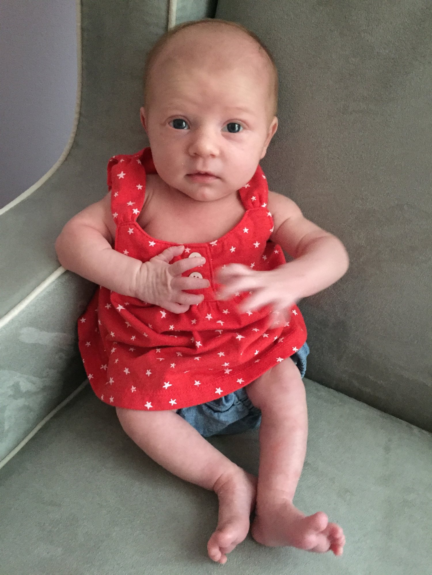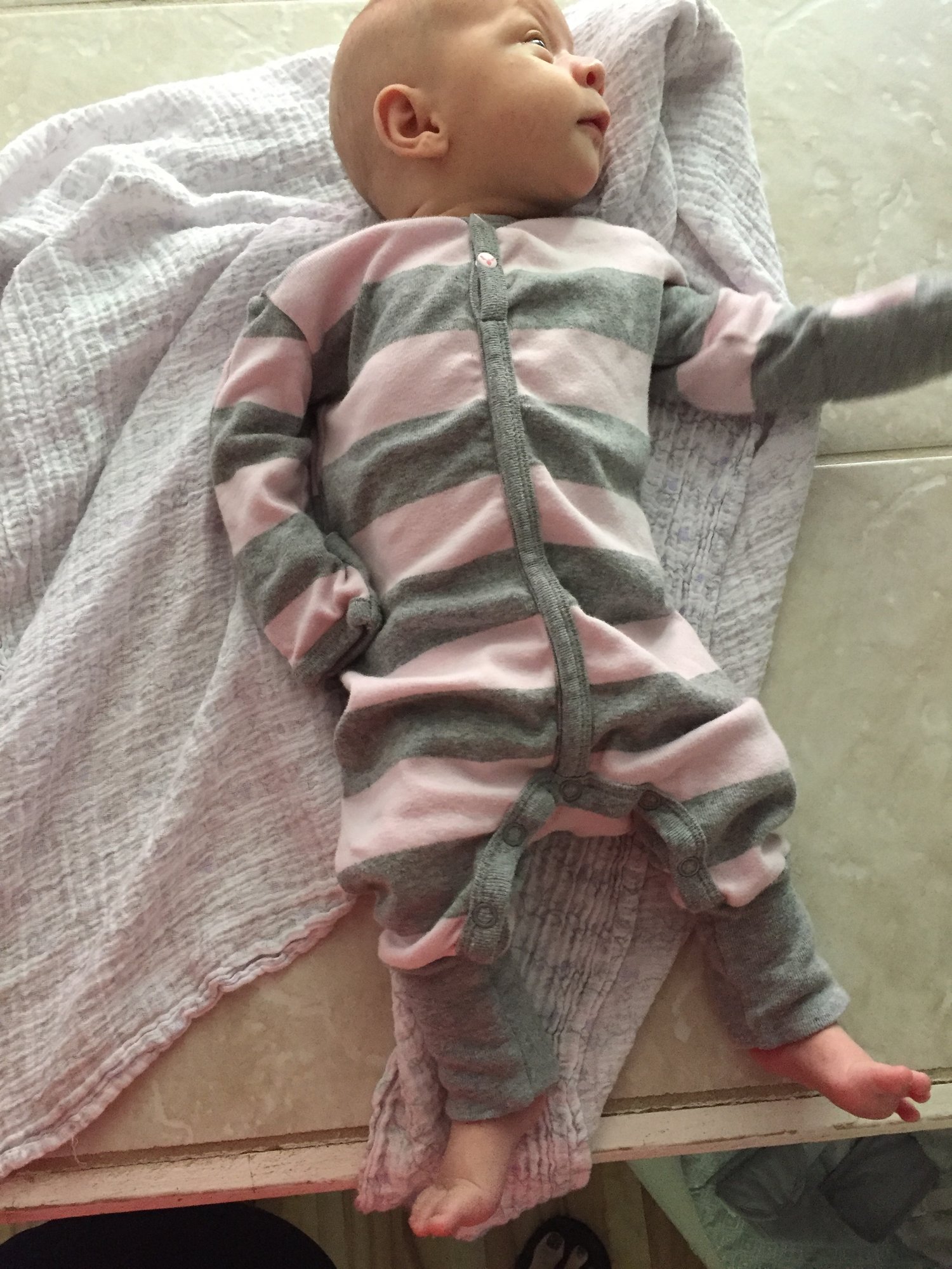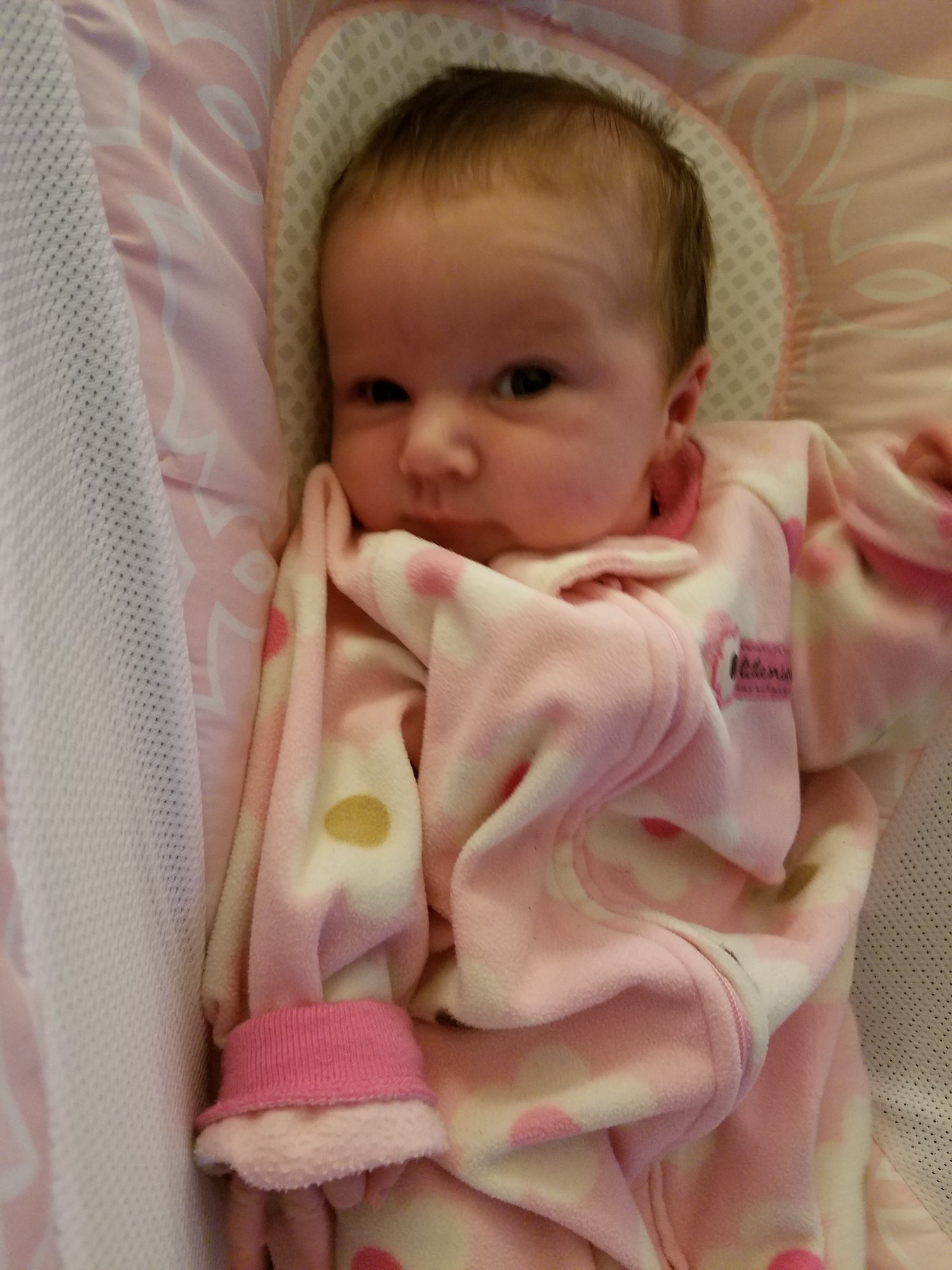 Simon is 3 1/2 weeks, this pic is from a few days ago.