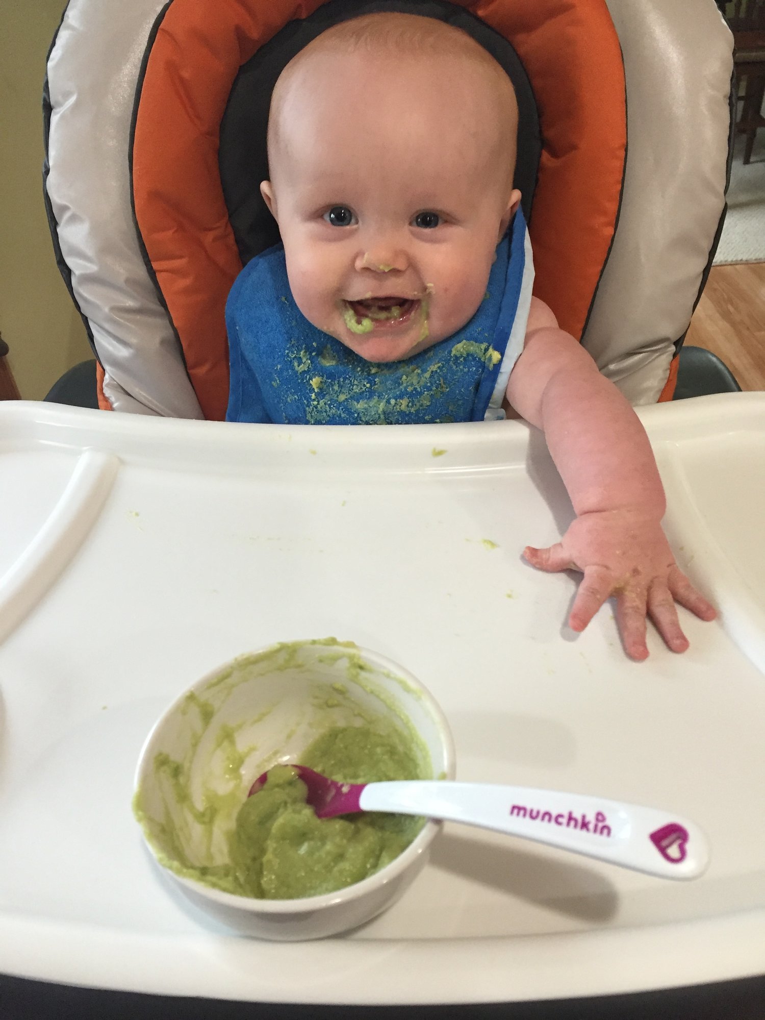 Gave him a slice of orange and he completely destroyed it he thought it was so good. He's totally not into being fed - he wants to do it himself so it's been interesting trying to find foods he can eat on his own without choking. Oranges are the winner right now haha.