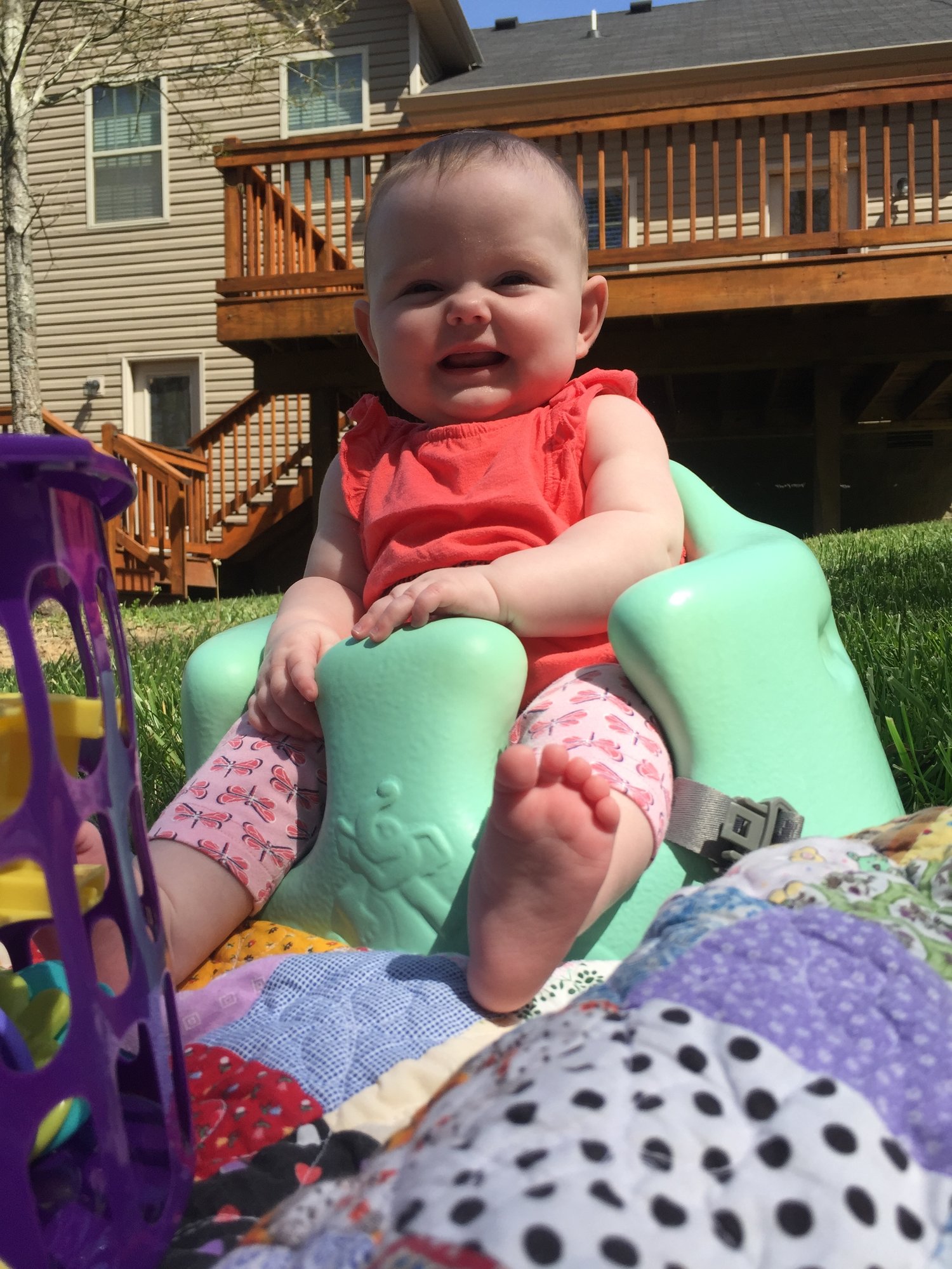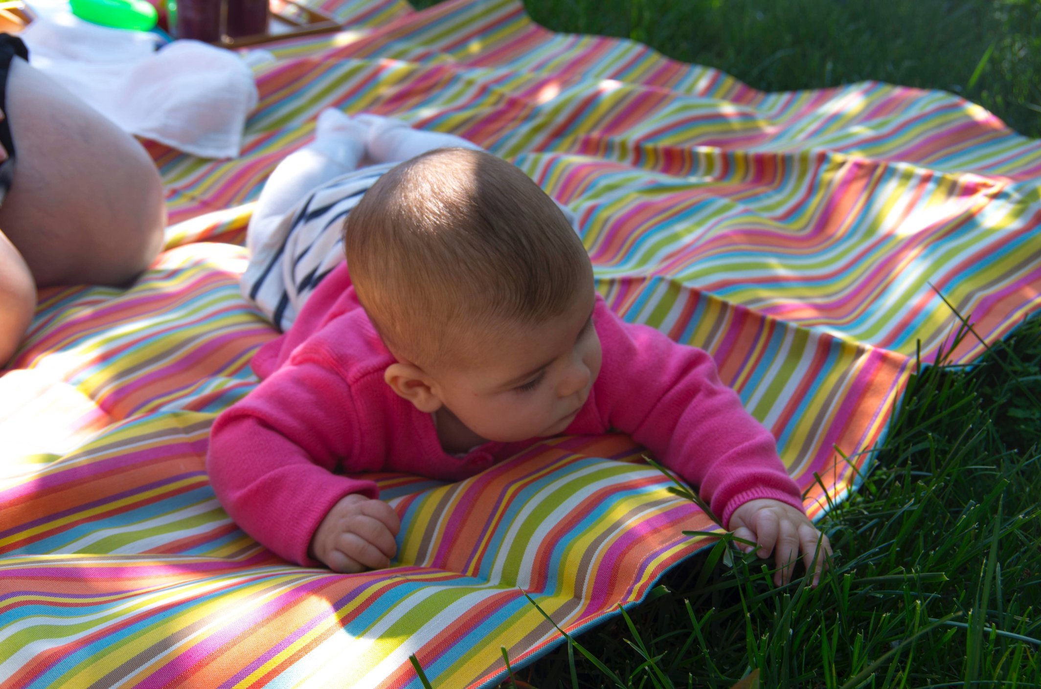 Show me a baby enjoying some sunshine.