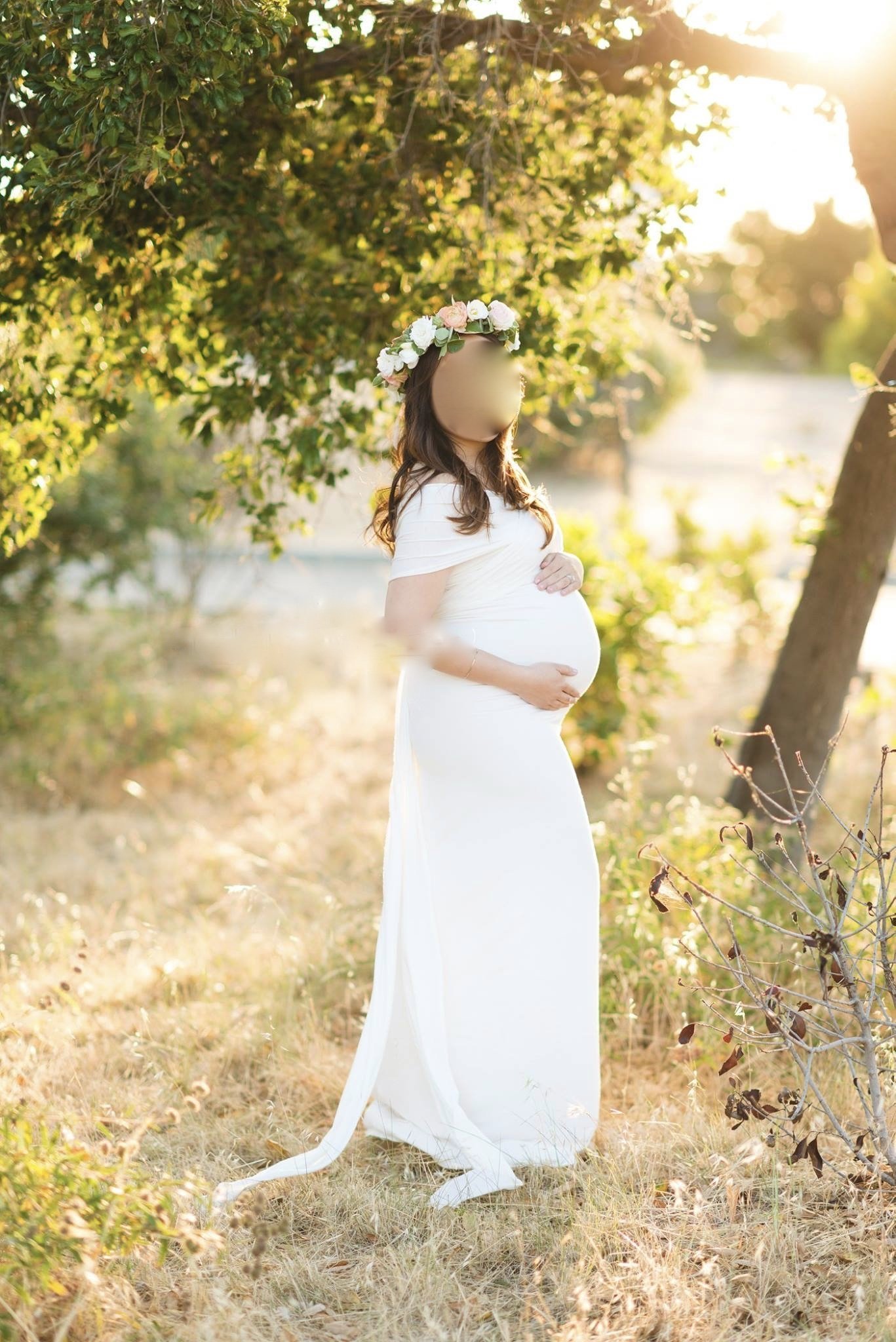 I just wanted to add to keep an open mind to non-maternity options! I got mine at a Charlotte Russe when I wasn't even looking for anything for the shoot. It was an empire waist with lace on top and a long flowy skirt and I loved it. My belly's huuuuuge and I was surprised that it actually fit. I got compliments on it all day when I did the shoot.