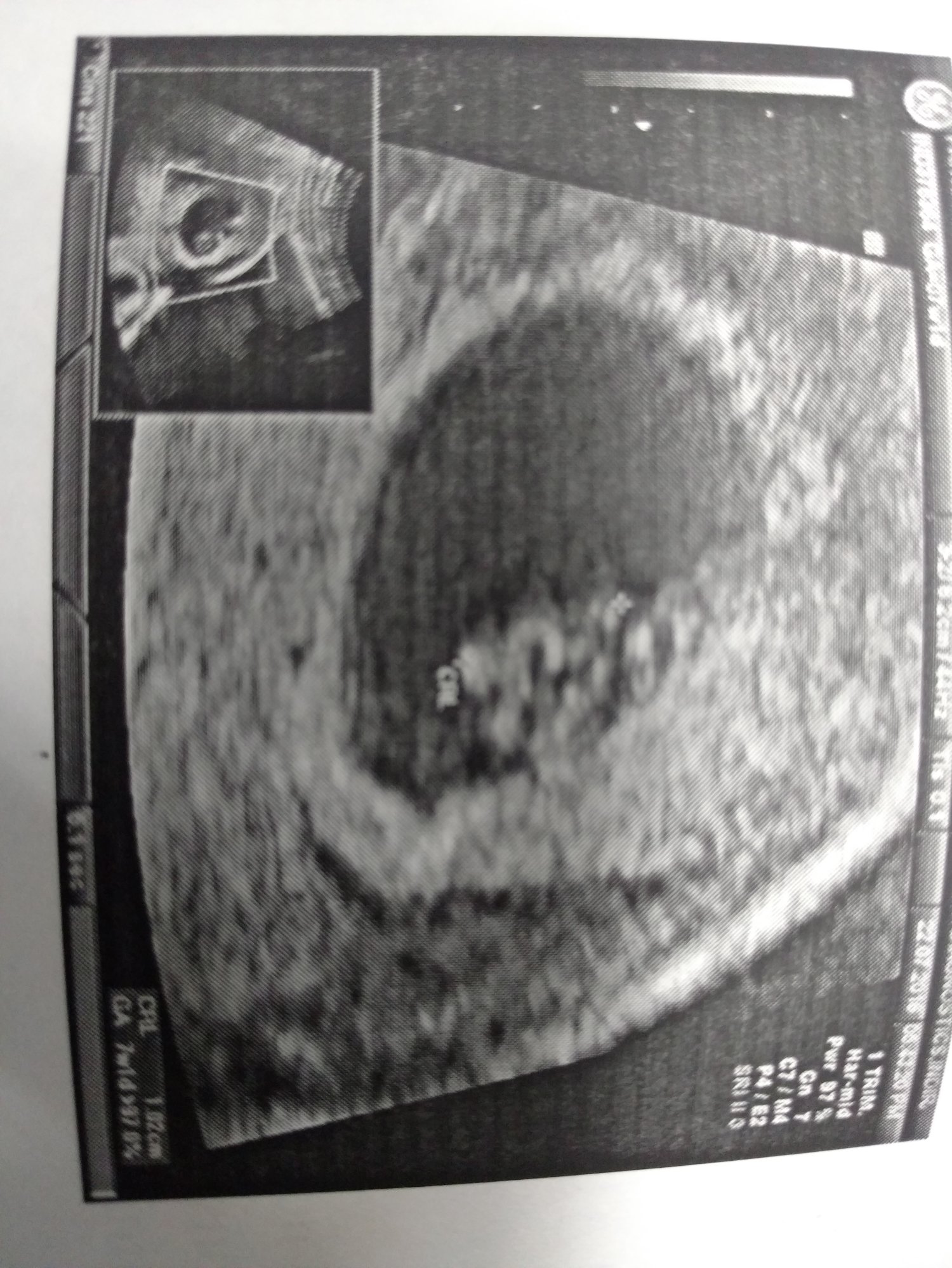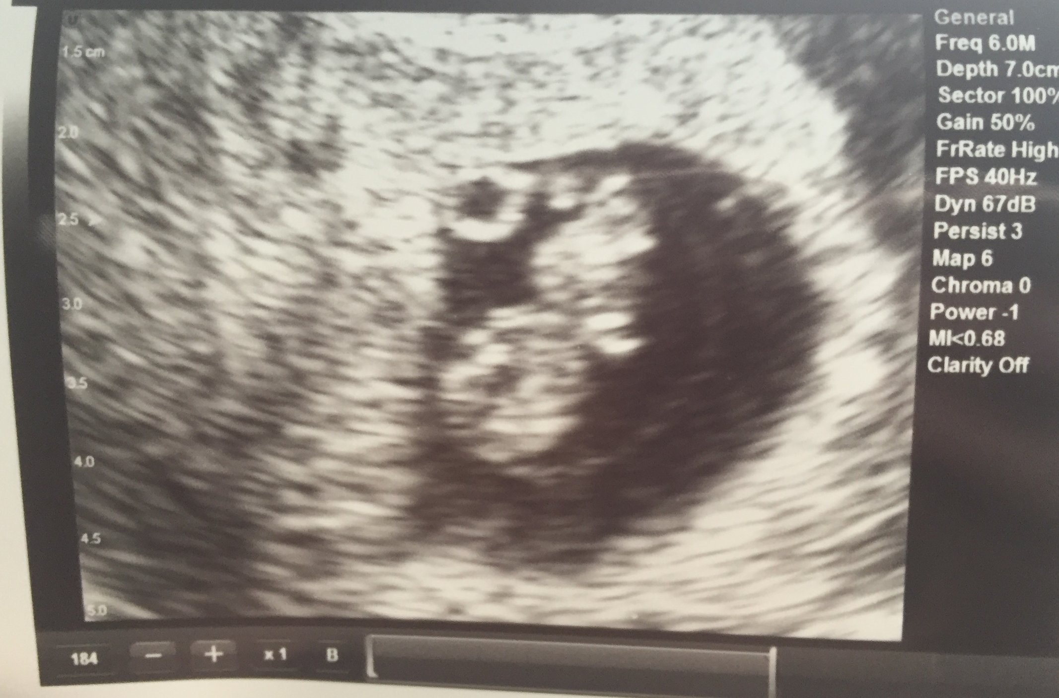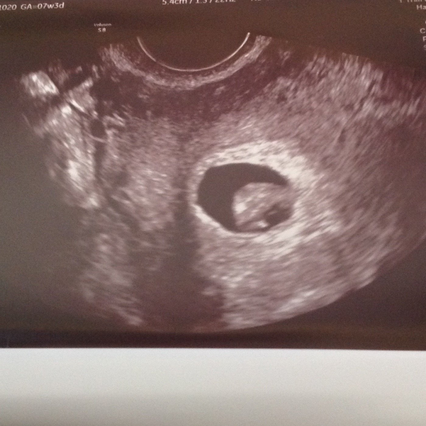 Sorry it's enormous but I suck at computers. I'm measuring exactly 8 weeks today and heart rate was 166. It was so nice to know that all the nausea and boob pain is not all in my head. There's a real person in there!
