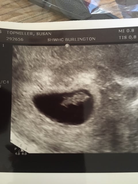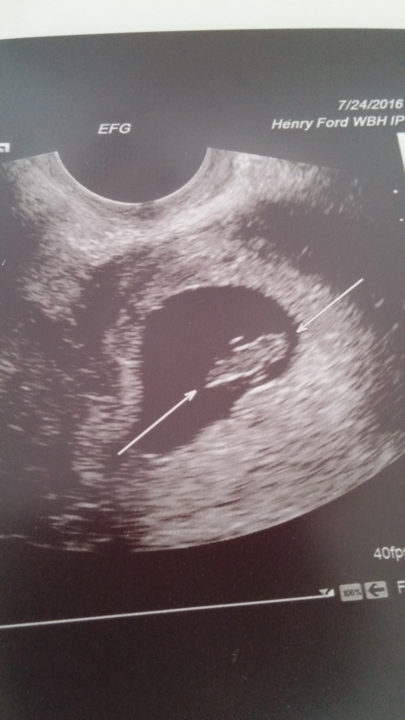This was the blob as of today, 8 weeks. This was my first regular ultrasound instead of vaginal. I actually think I prefer vaginal because it is much clearer. But either way so happy to see it again. Heart rate was 169.