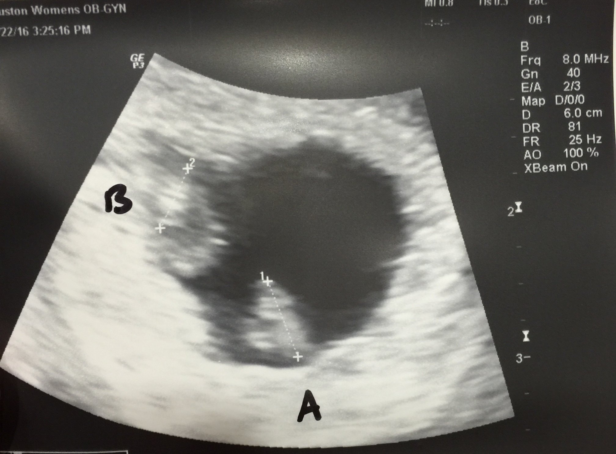 So excited to finally be able to post here!!! It's blurry since I'm in the car and took phone pic! But measuring 8W 2D right on schedule, EDD 3/4/17, HR 166!!!