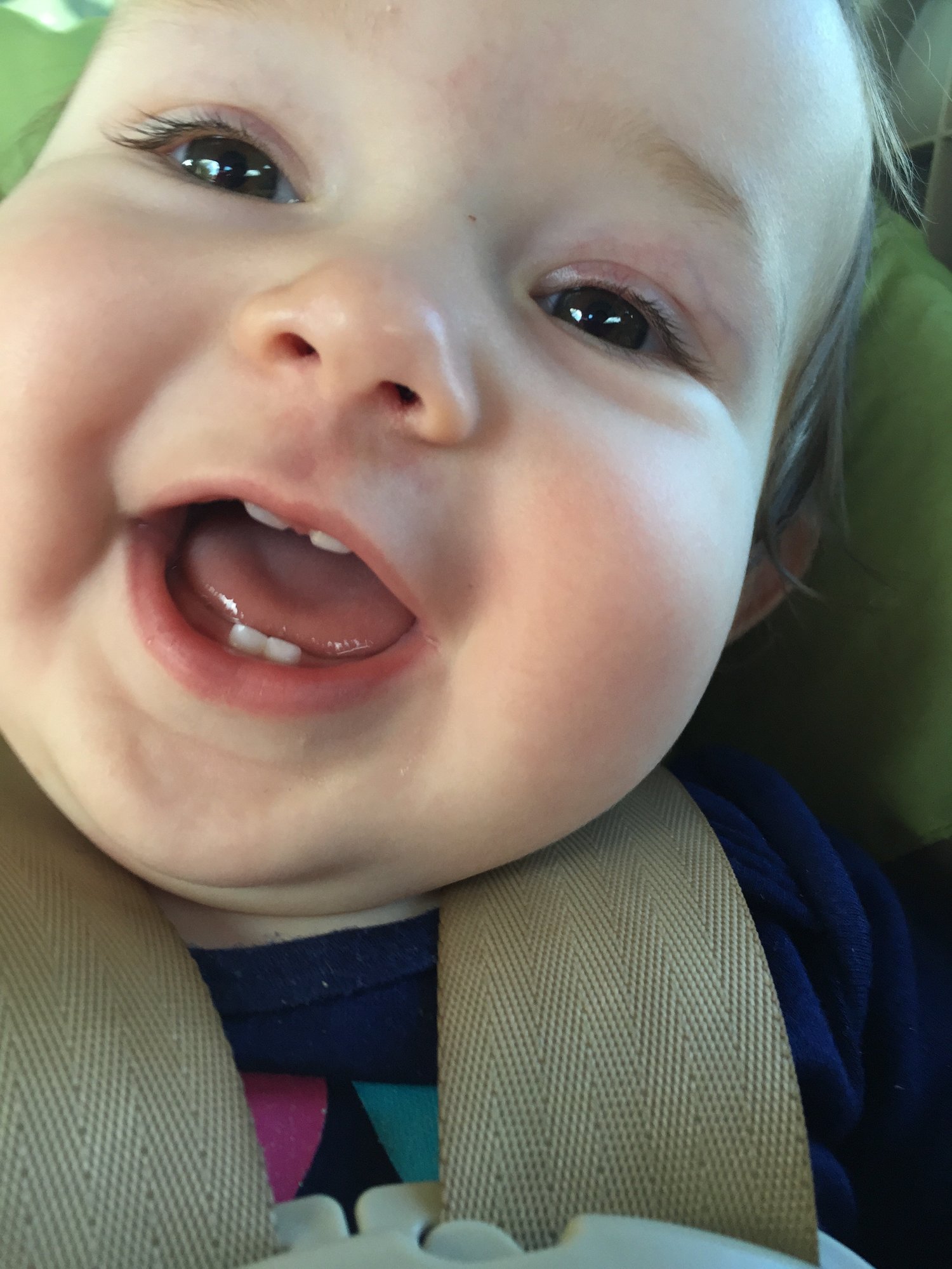 All of your babies are adorable! Super jealous of all the hair and toothy smiles! DH gave her a piece of oreo and she decided to share it with her doll haha.