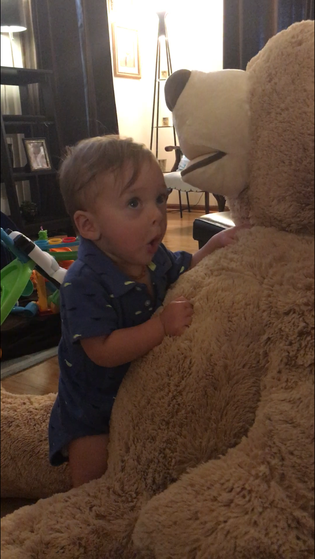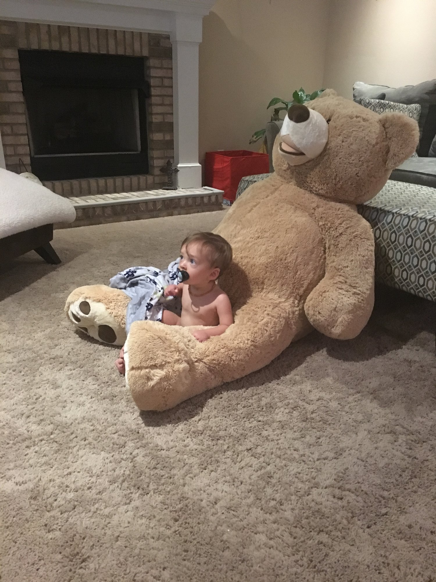 Judah's Nonni got him this massive bear. He lost his shit! And now he sits wth him while he watches baby Einstein in the morning when I'm making his breakfast