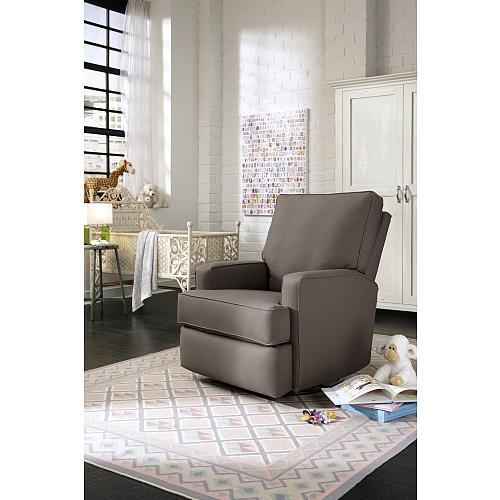 @tinabelcher I wanted nothing to do with getting a traditional nursery glider. I didn't like how they looked and wanted something I could use more than just as baby was little. We ended up getting a chair from Toys R Us (that is technically a glider) but it rocks, swivels, and reclines. The best thing is that the recline function is actually between the cushion and the arm so you don't have to reach down on the outside to open the foot rest. We used this at night religiously. I will caution you, it is tough to stay awake and it is dangerous to fall asleep while holding baby so something to be careful of. But in all honesty, I don't think it mattered where I sat I battled falling asleep. During the day I fed baby wherever comfortable and since I exclusively pumped I had a station set up in the living room where there was an upright comfy chair. Here is a picture of a similar chair to what we got. I love it because we can put it in a family room some day.