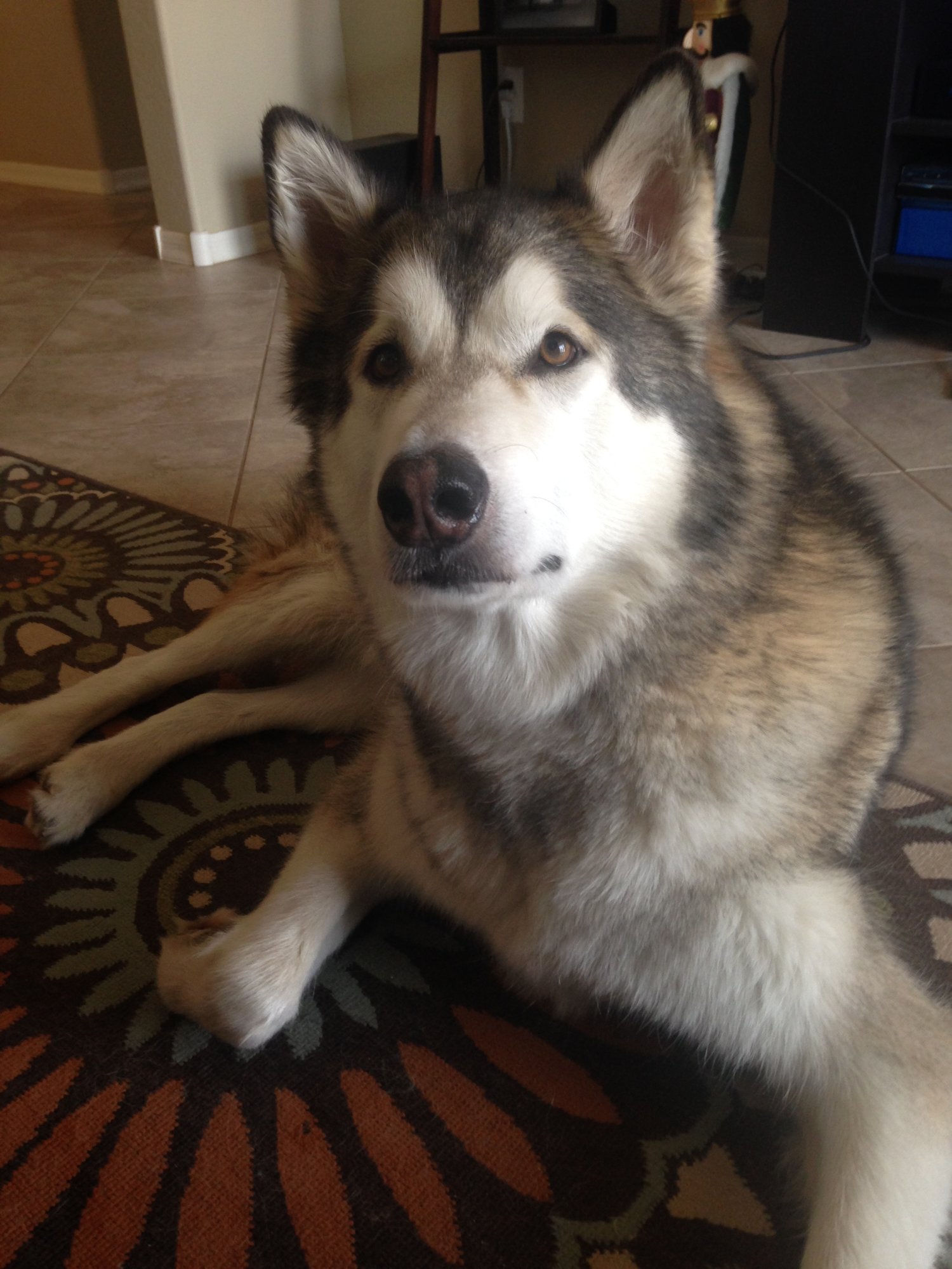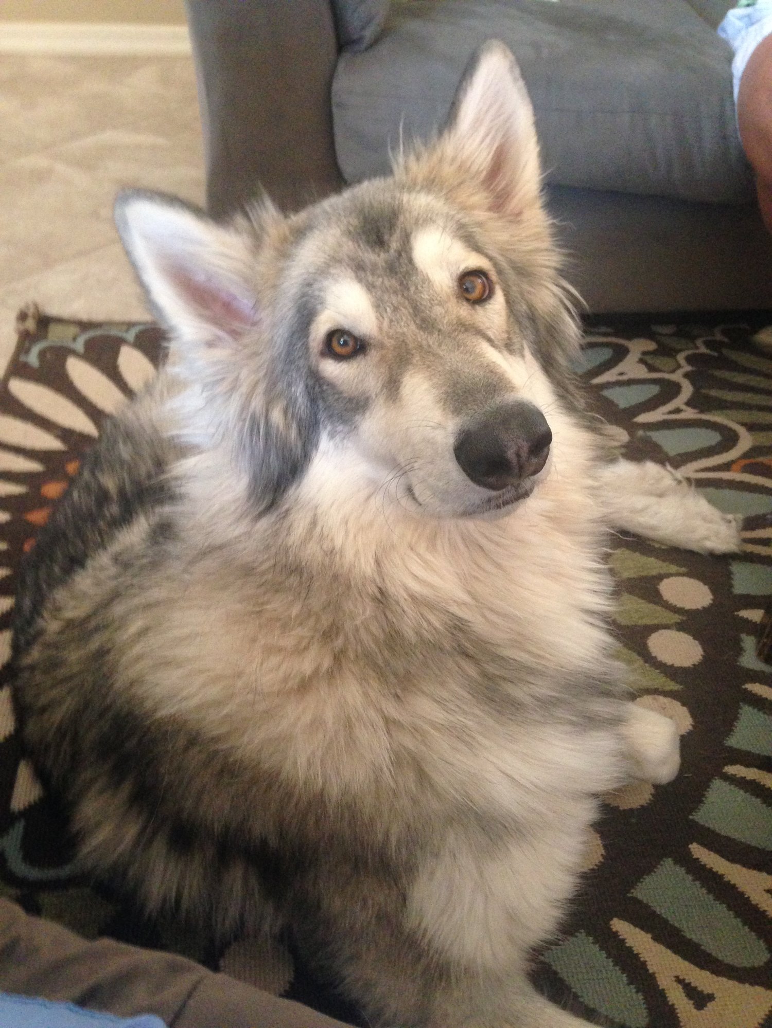 Fur mom to 2 sled masters: an Alaskan malamute and a malamute wolf hybrid