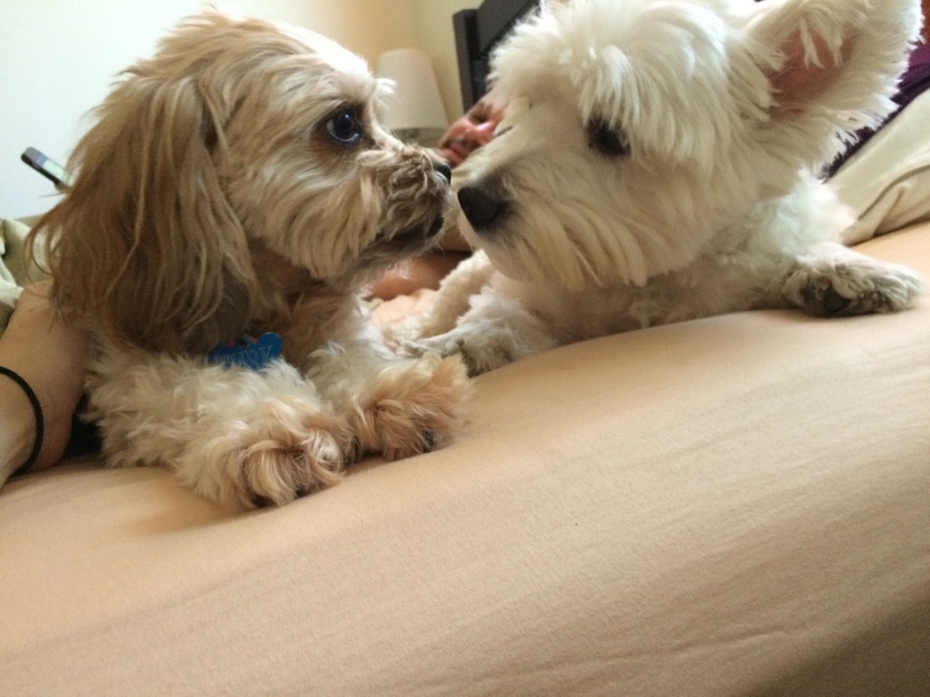 Here are my good boys, Turk and Floyd! Lhasa Apso mix and Westie. THey are step brothers.