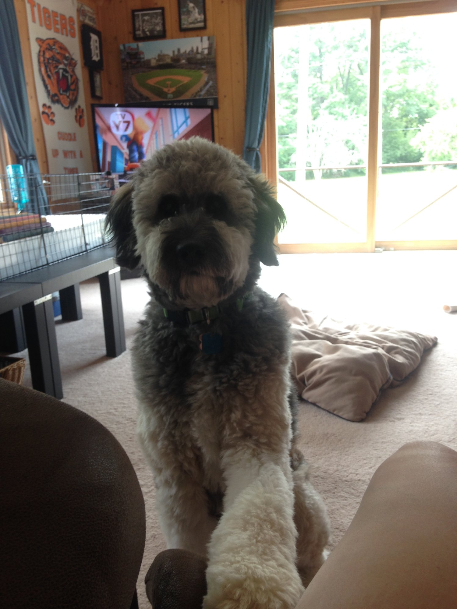 This is Wyatt trying to convince me to give him a bite of my cookie..