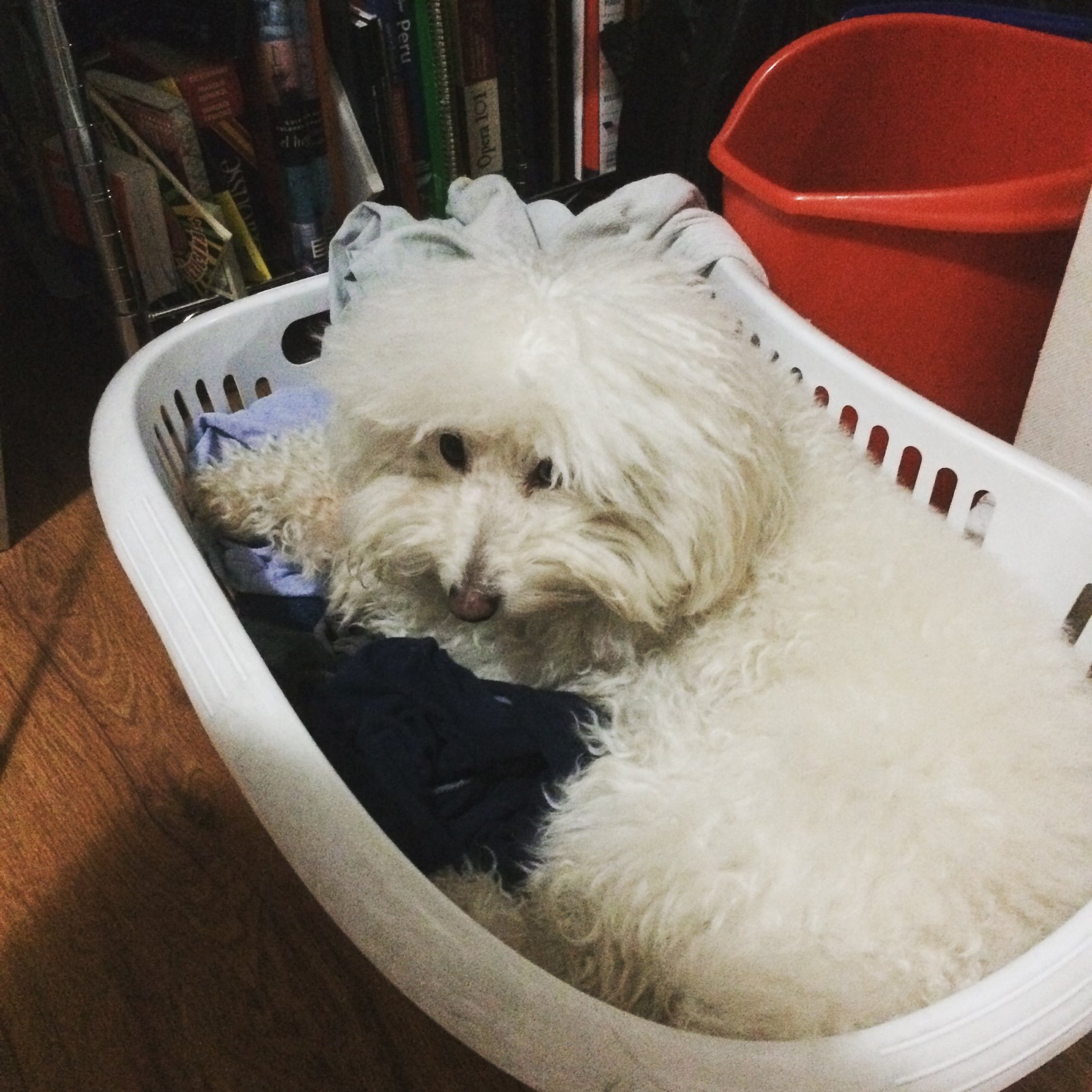 this is my little one: Luke Skywalker sitting in the clean clothes basket!