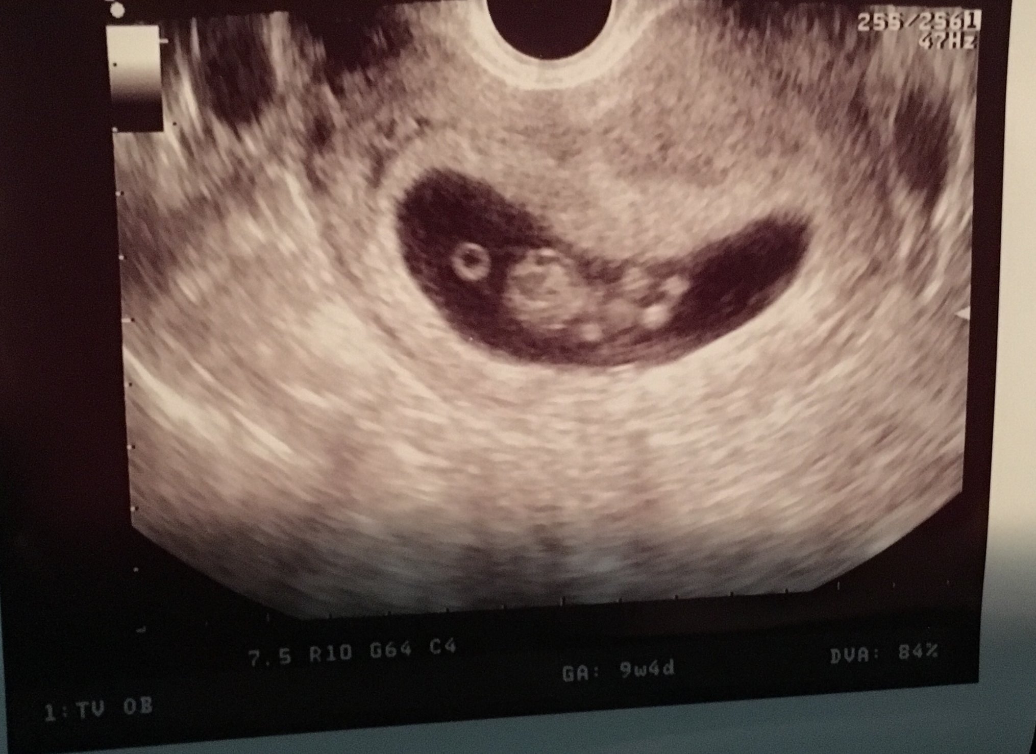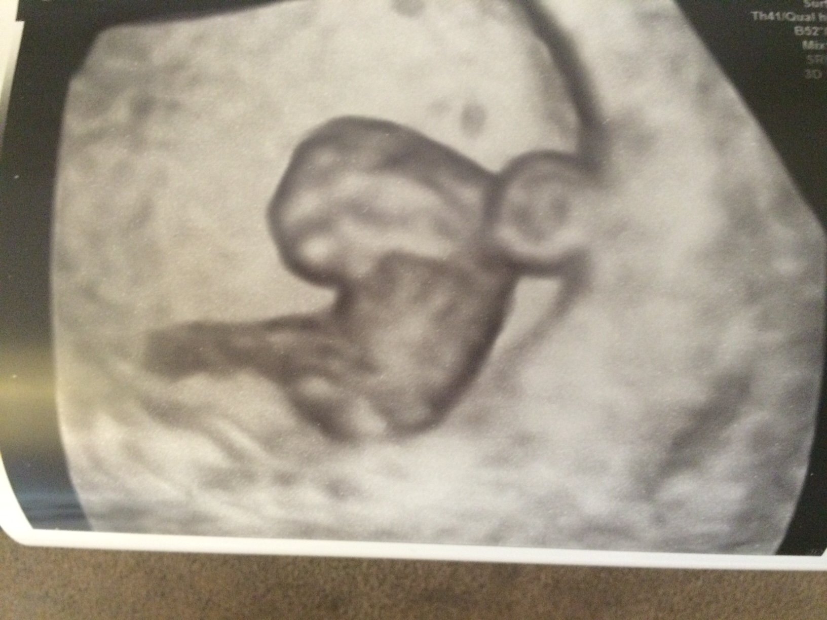 Little one came in right on time at 9 weeks 4 days strong hr at 176. Looks like we are in the clear and pgal brain can go away. Next appt on the 16th to get Harmony test done.
