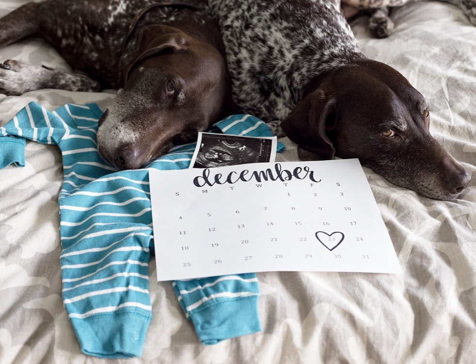 Once we found out we revealed it to our parents and siblings by putting a boy outfit in a bag and had our mothers open it. Then I made everything public on Facebook (we hadn't even announced I was pregnant on FB yet.) this is the picture I posted with the caption "we will be adding another BOY to the bunch in December, the dogs are thrilled."
