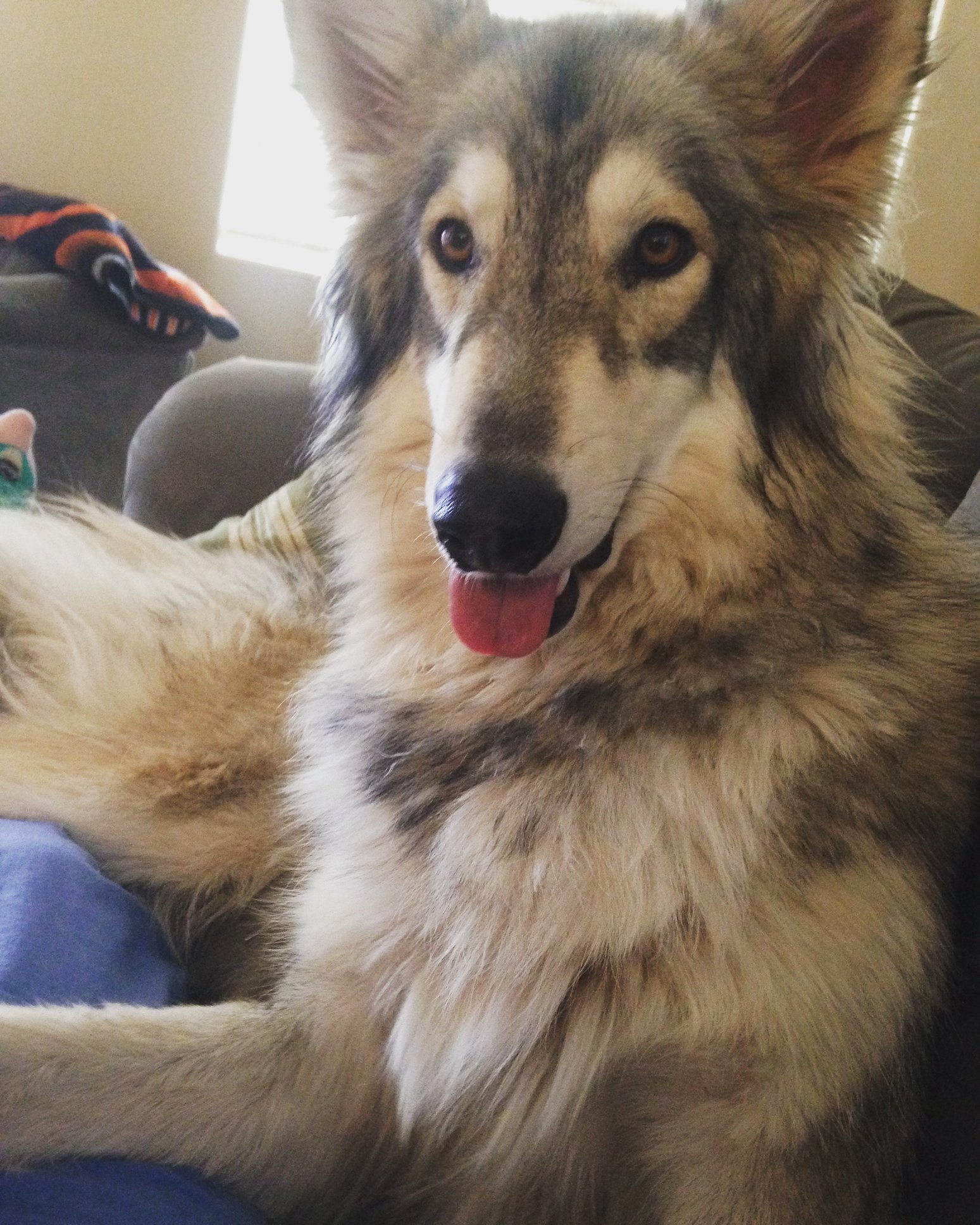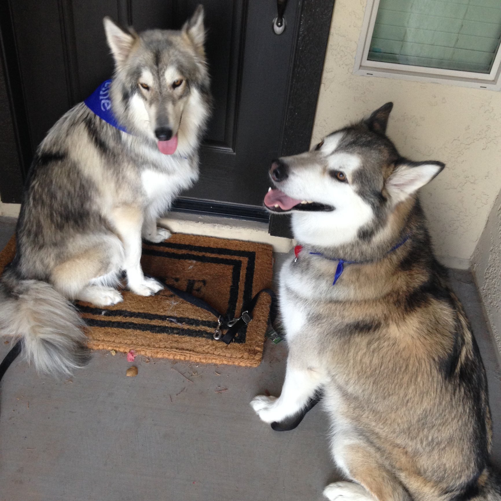 Fur mom to 2 sled masters: an Alaskan malamute and a malamute wolf hybrid