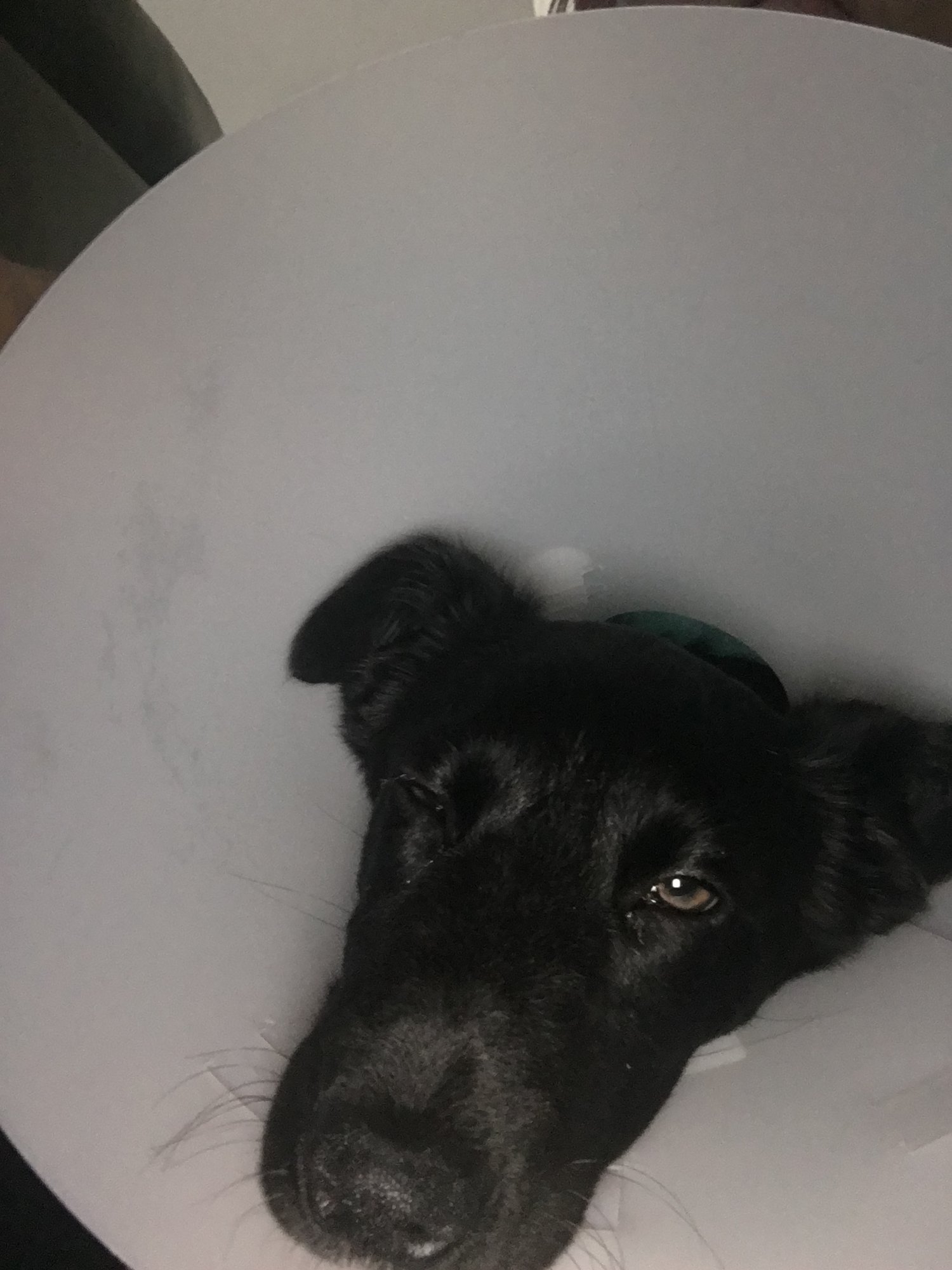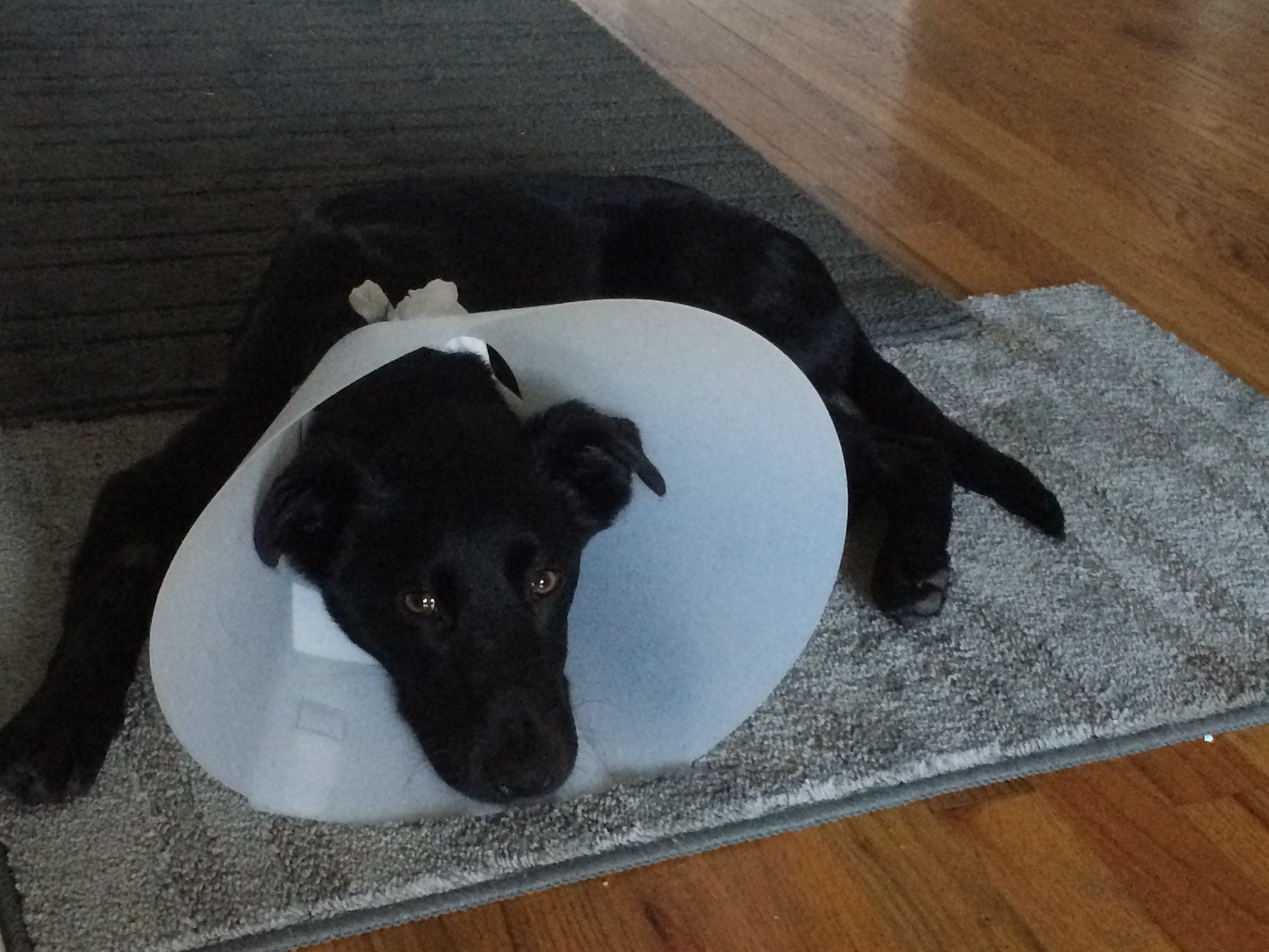 Poor baby Barney got neutered this week. He was so sad and mopey for a day and then bounced back to his normal peppy self the next day! He's maneuvering just fine in his Elizabethan Collar (i.e. cone of shame".