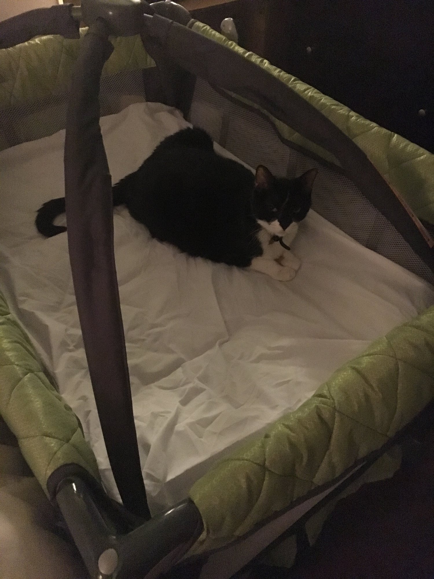 Super random but my husband set up a pack n play we bought recently and my cat is in love with it . I'm worried we may need to buy one just for him , haha