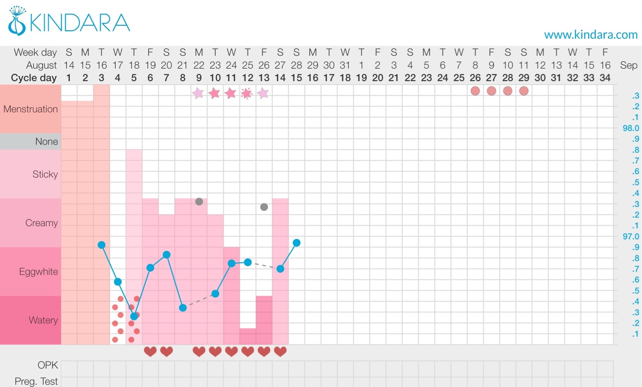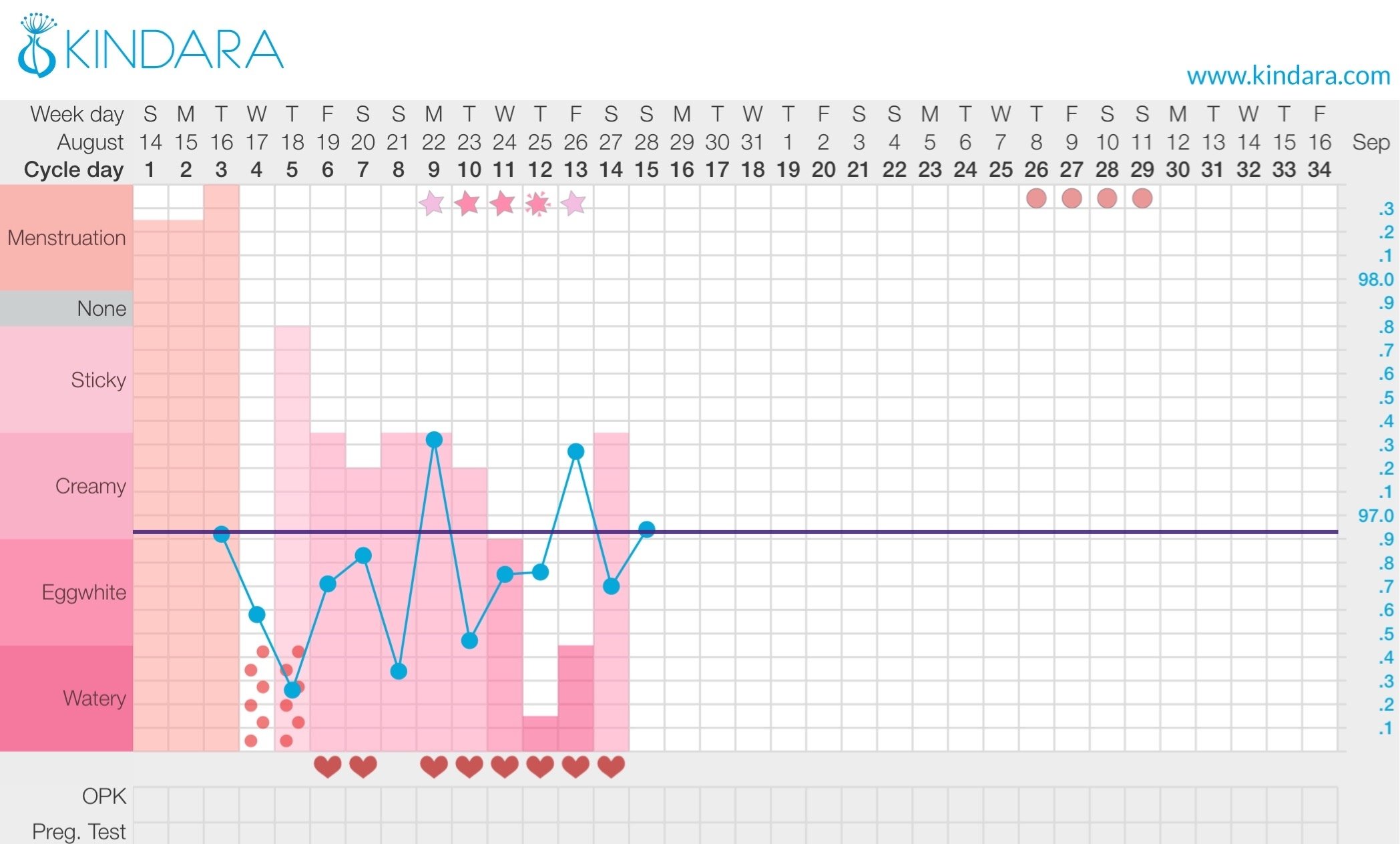 The stars at the top of Kindara charts show estimated FW. The hearts are BD days.... Btw, good work @GiddyUp82 lol
