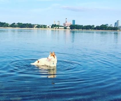 On a fun note here is a pic of my dog swimming this morning. So sweet.