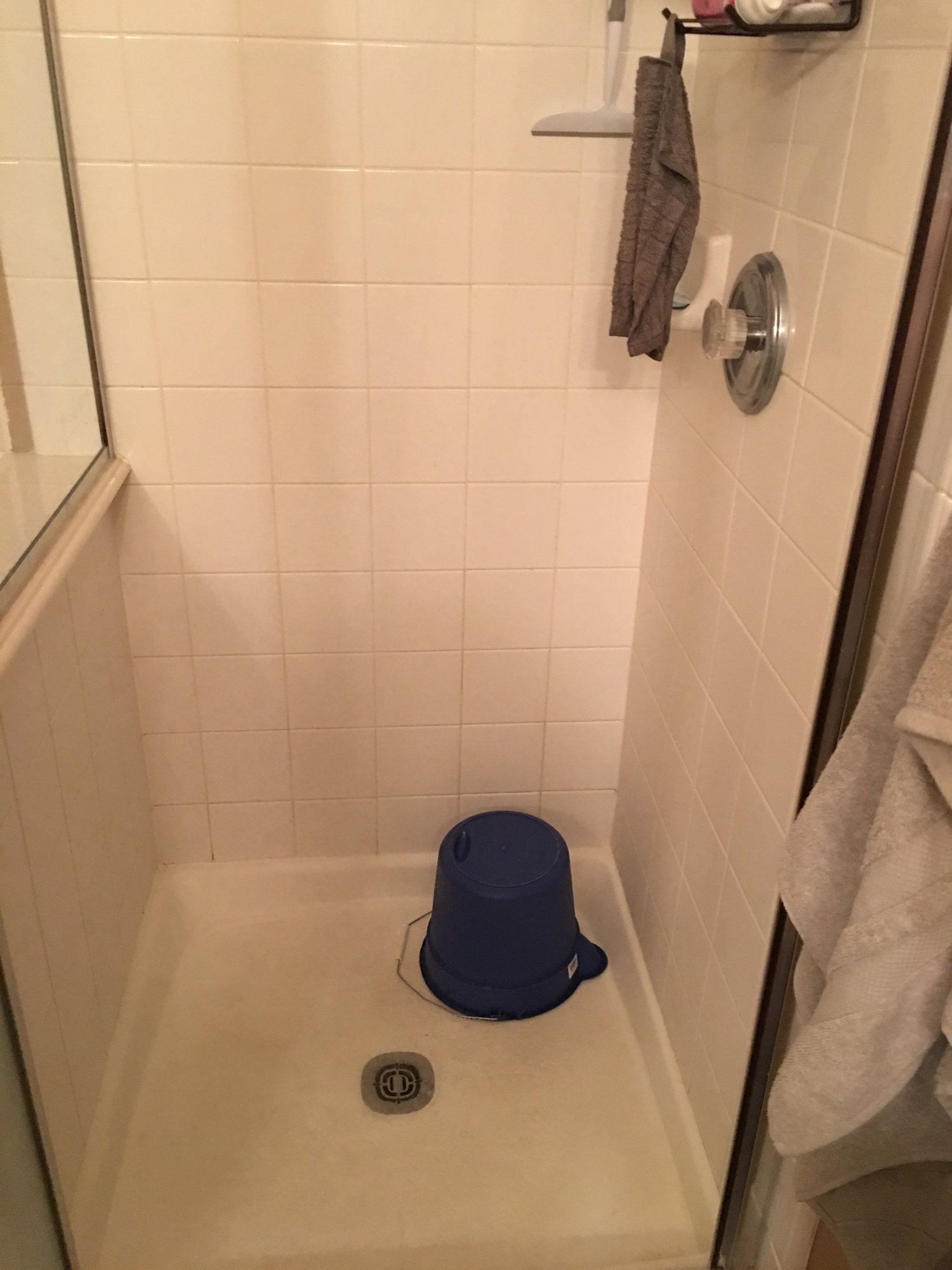 Even with a tub (and therefore a lip to put my feet on) shaving is getting difficult. But only my left leg? I think it's because I'm right handed, so I have the razor in my right hand, and when I shave my left leg I have to lean over to the side more to get everything and the bump pushes into my upper thigh.