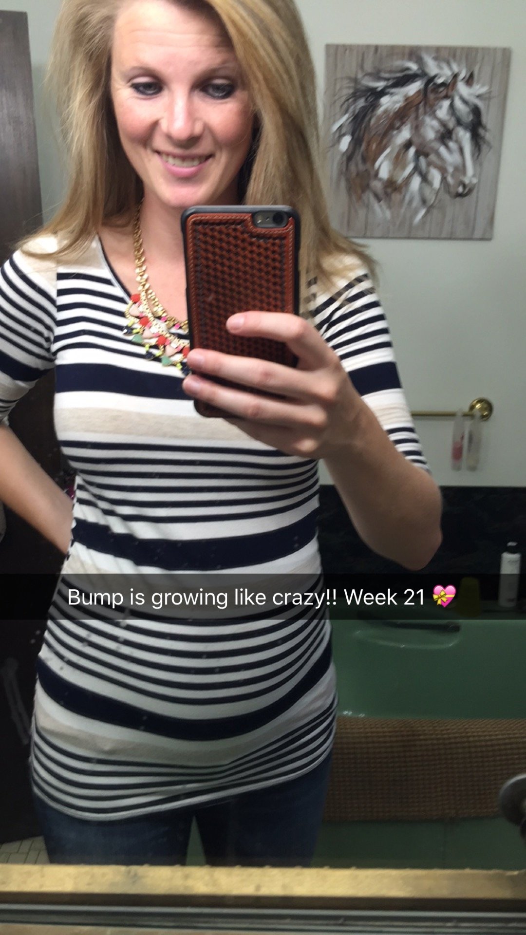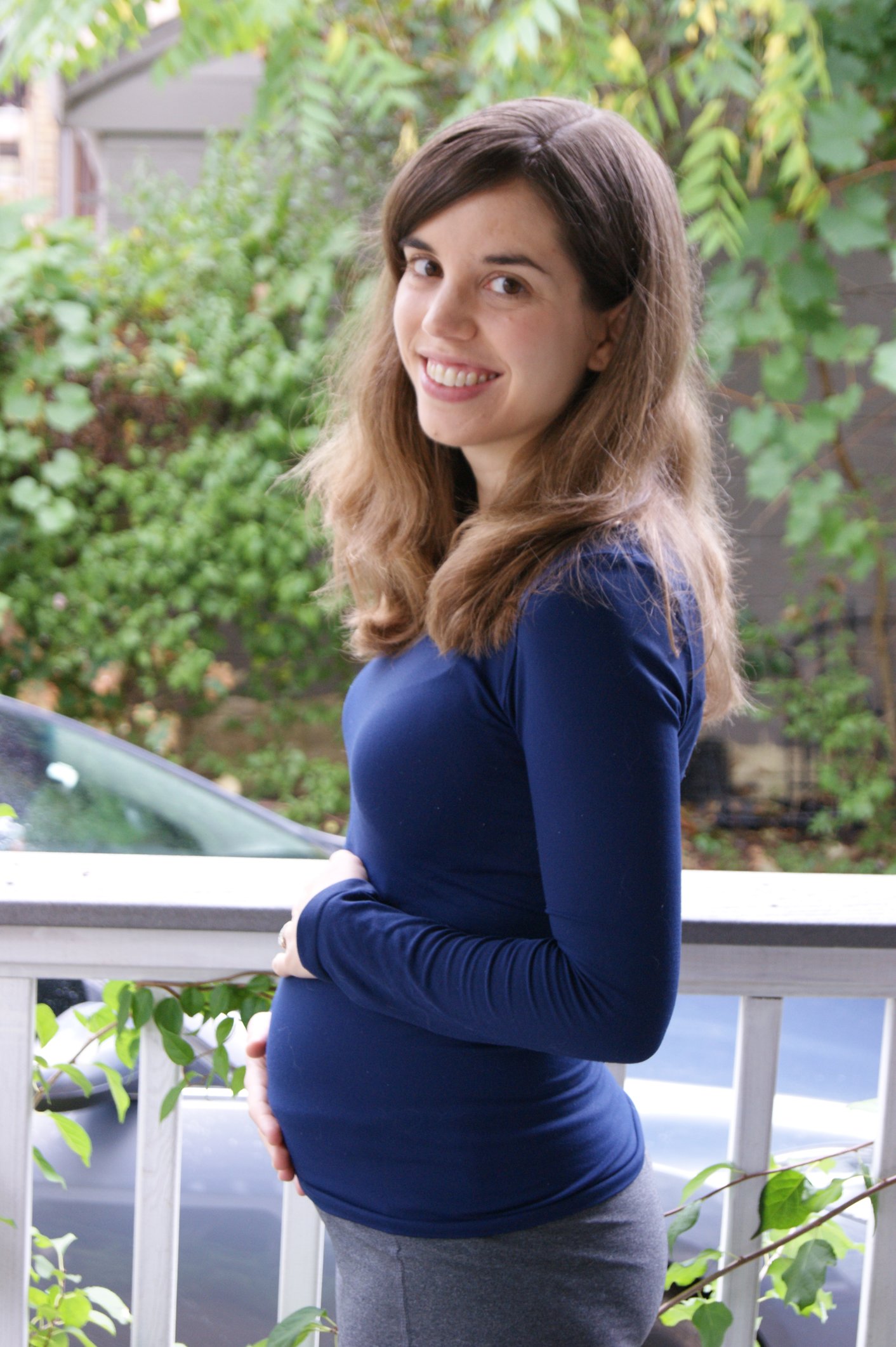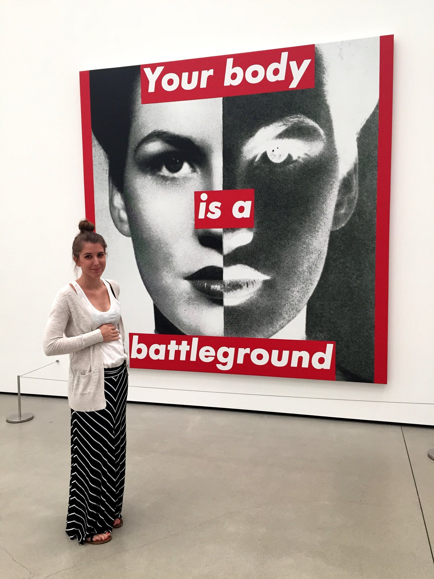 Everyone is looking so, so cute! This is my first time participating, as I don't have much in the way of a bump yet and a closet consisting almost entirely of loose-fitting clothes. My 20 week bump isn't too apparent in my photo, but I thought the art was apt for many of us.